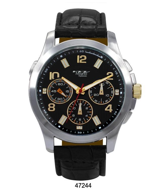 M Milano Expressions Black Vegan Crocodile Band Watch with Silver Case and Black/Gold Dial