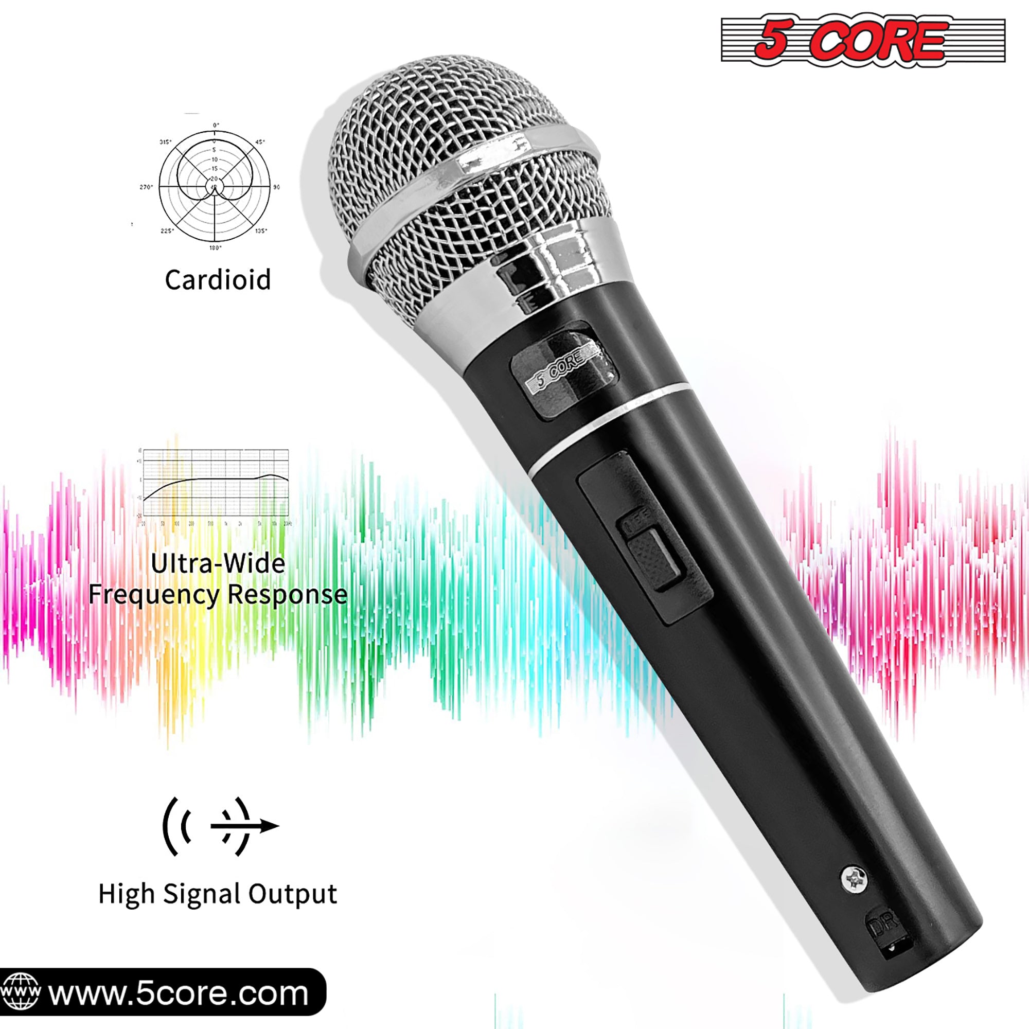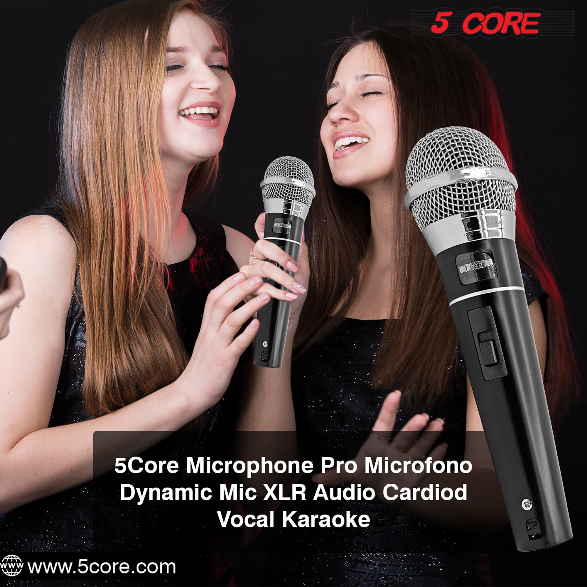 Dynamic Karaoke Mic: 5 Core Dynamic Karaoke Mic with XLR cord, ideal for live situations needing noise cancellation, great for presentations, weddings, conferences, places of worship, interviews, and solo performance.