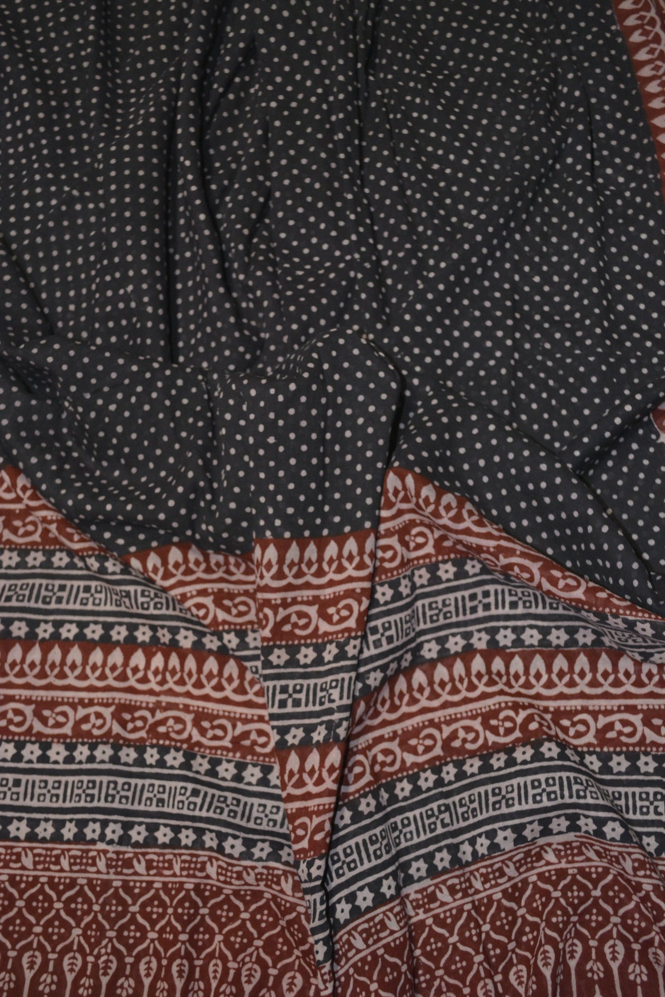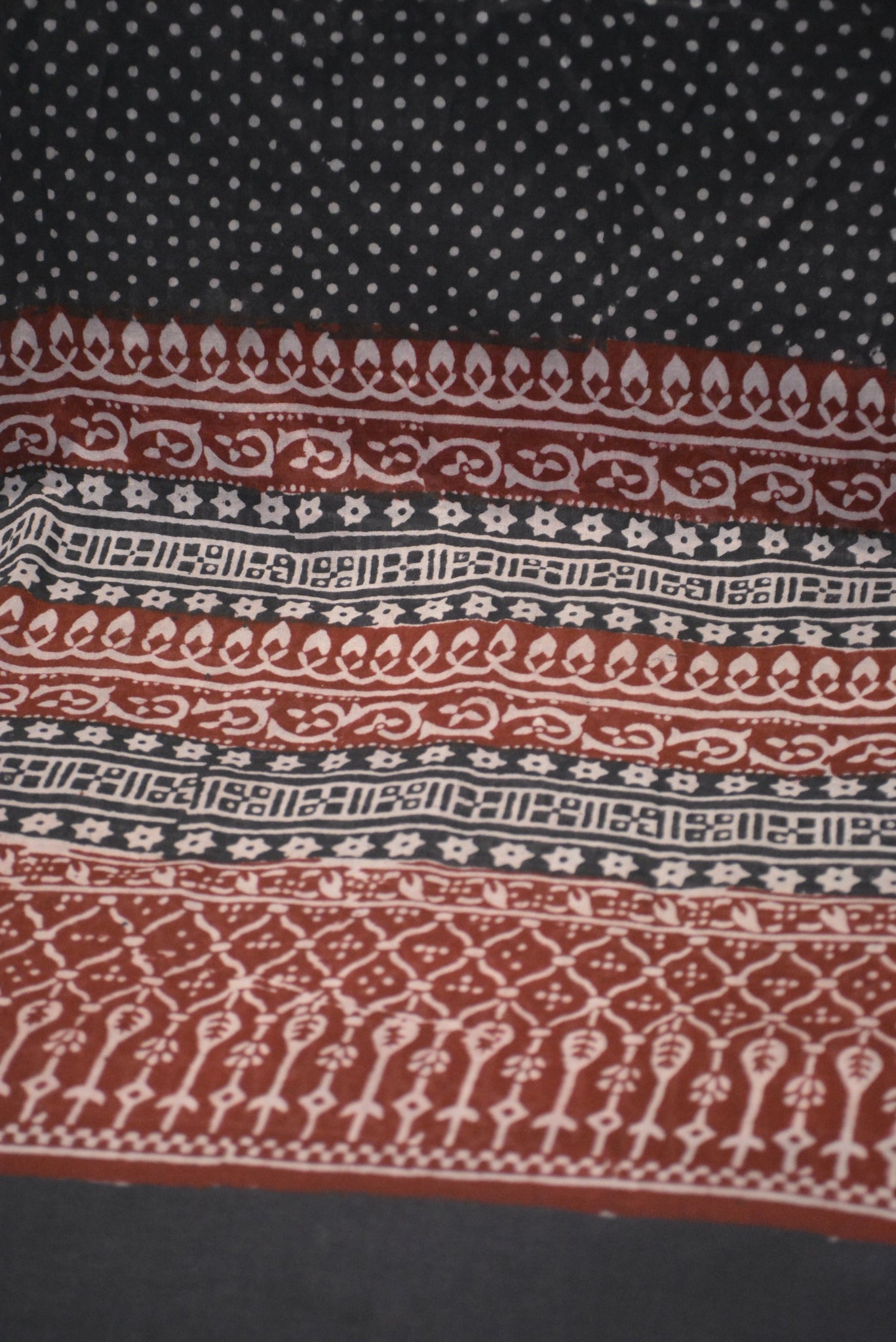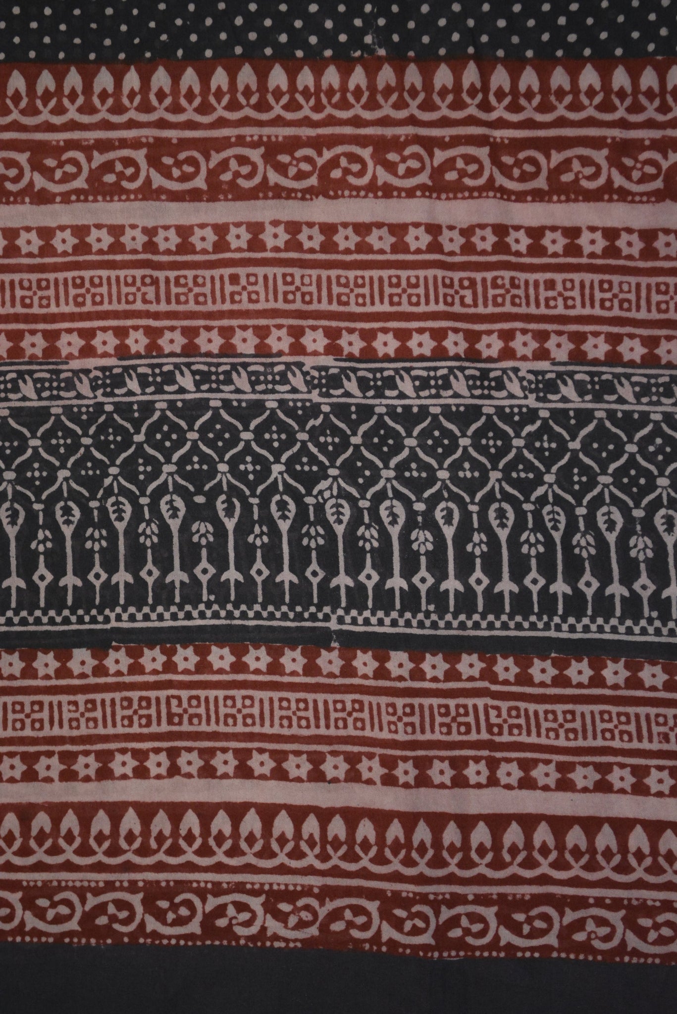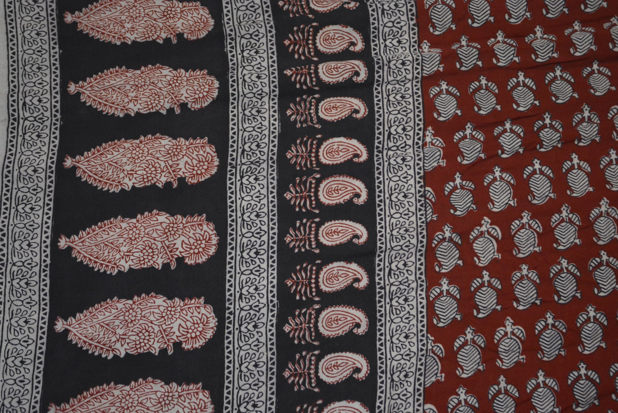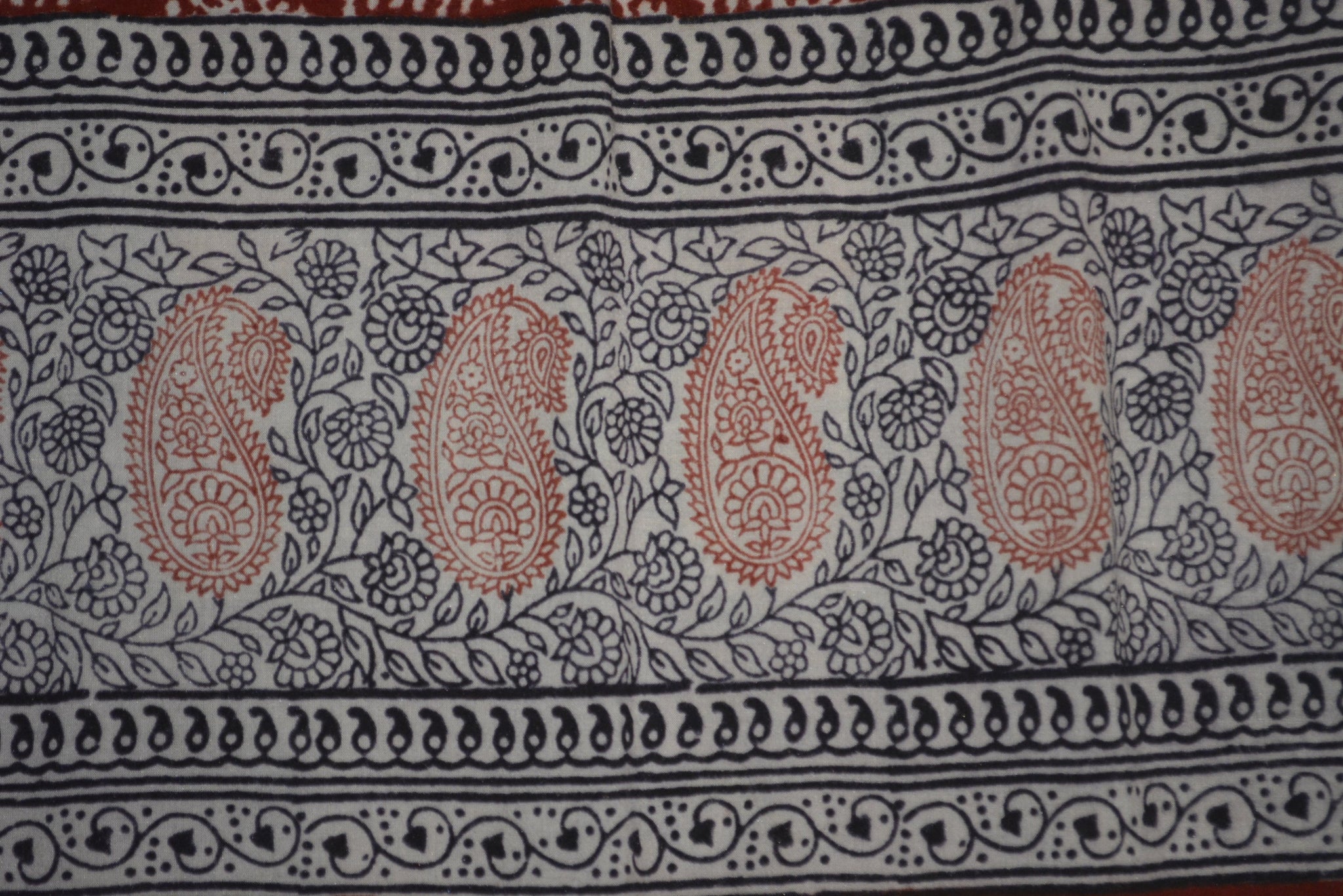 Red and Black Paisely Design Hand Block Printed Naturally Dyed