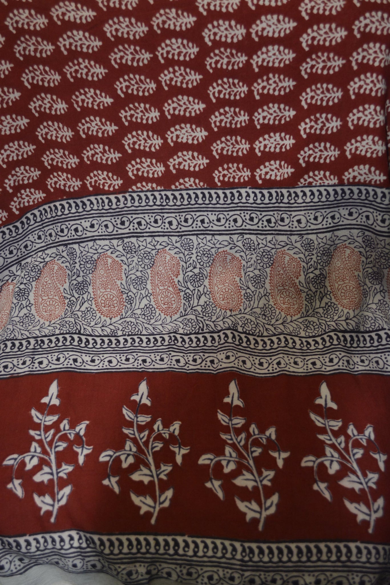 These intricate paisley & floral hand block printed fabric is a trendy, cool, and comfortable cloth material. Though the techniques and designs are age-old the prints retain its contemporary appeal.