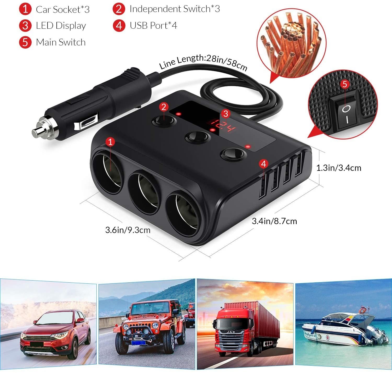 1 + 3 vehicle cigarette lighter;