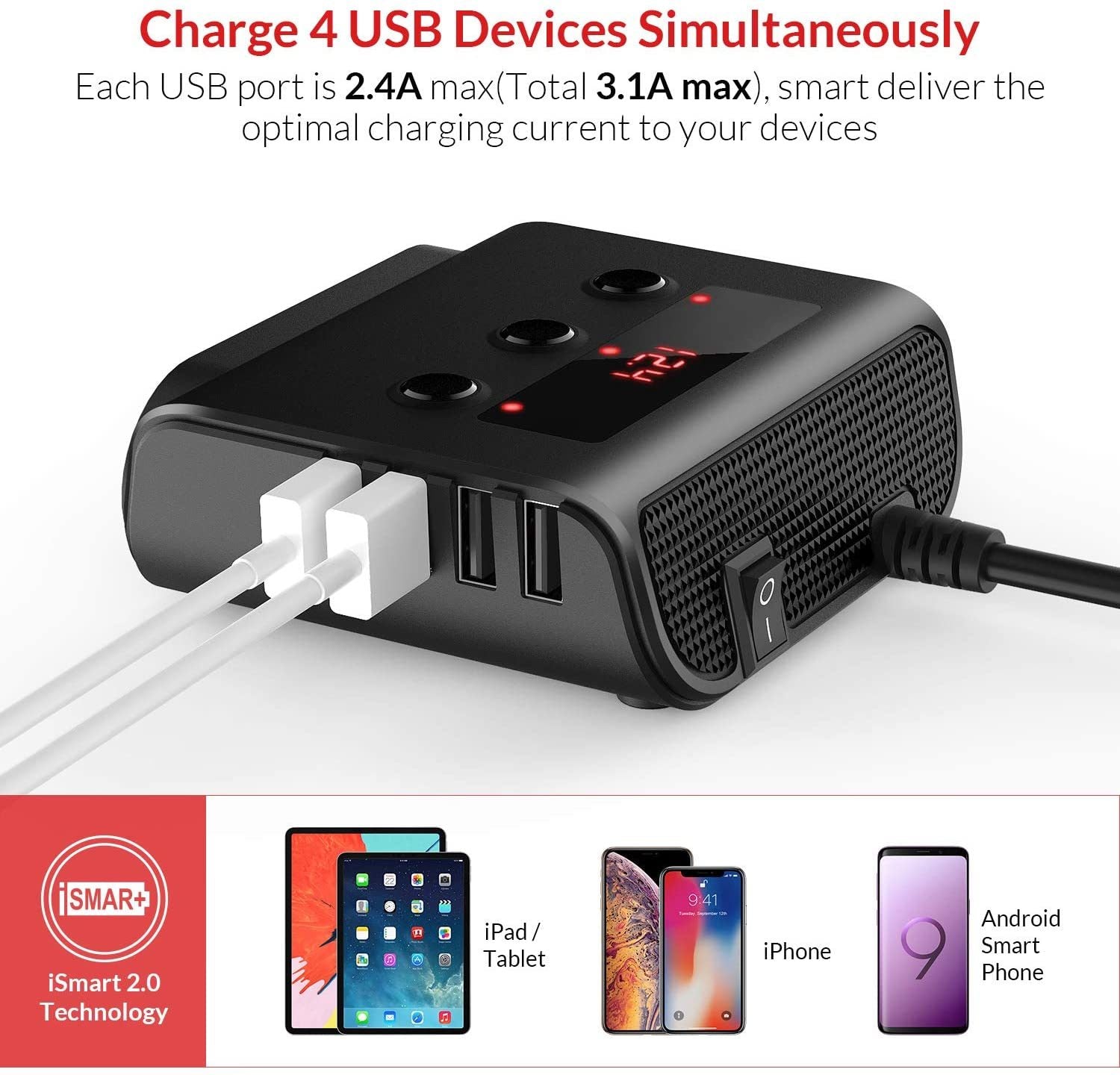 PSTR-12. Car coffee pot heating power supply 1 + 3, USB1 + 3 fast charger