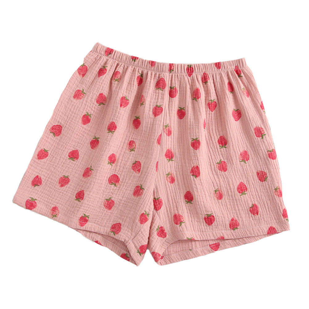 Cotton Loungewear Womens Pajama Bottoms Sleep Shorts for Summer - Strawberry