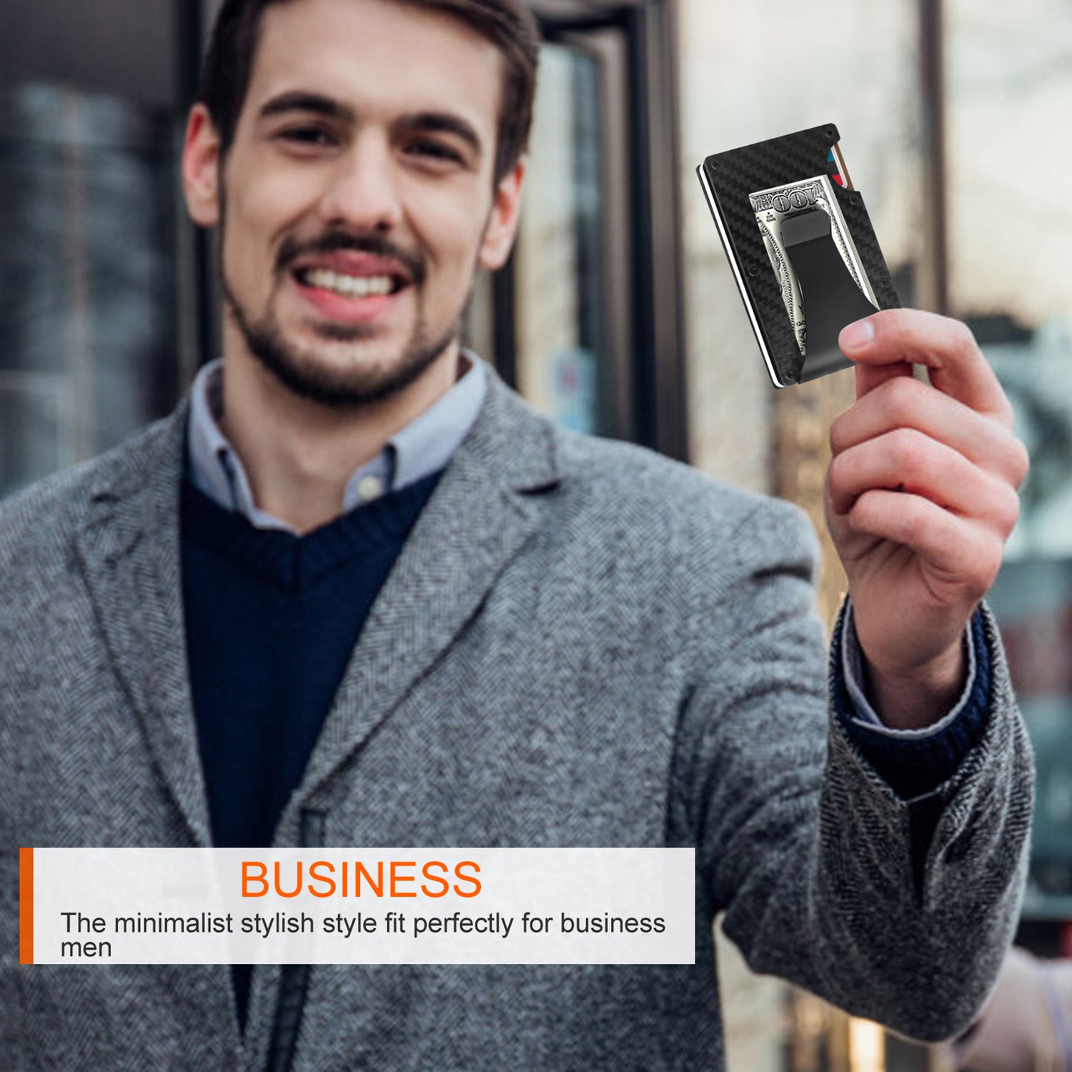 *Minimalist Style Design*:The minimalist stylish style and its credit card like size with only 2.2 ounces makes it fit perfectly for business men. Fit for both back pocket and front pocket,easy to carry.