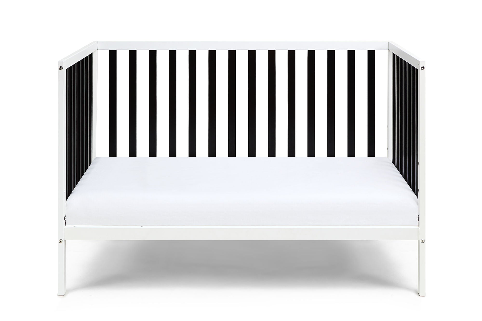 From the French word meaning two or two of a kind, our two-tone, Deux Remi Crib, is as in-sync with your nursery as the song is to a Lullaby. Suite Bebe really sings a sweet tune with this harmonious look. Smartly placed two-tone finishes offer a modern twist on a classic design. Crisp, clean lines and economically priced, the Deux Remi crib by Suite Bebe is the song of the century. Convertible design means it converts from Crib to a day bed or toddler bed with additional purchase of the guardrail. Durable wood construction. Two-tone finish. 3 Adjustable mattress heights for convenience. Fits a standard size crib mattress (sold separately). Non-toxic nursery safe finishes.
