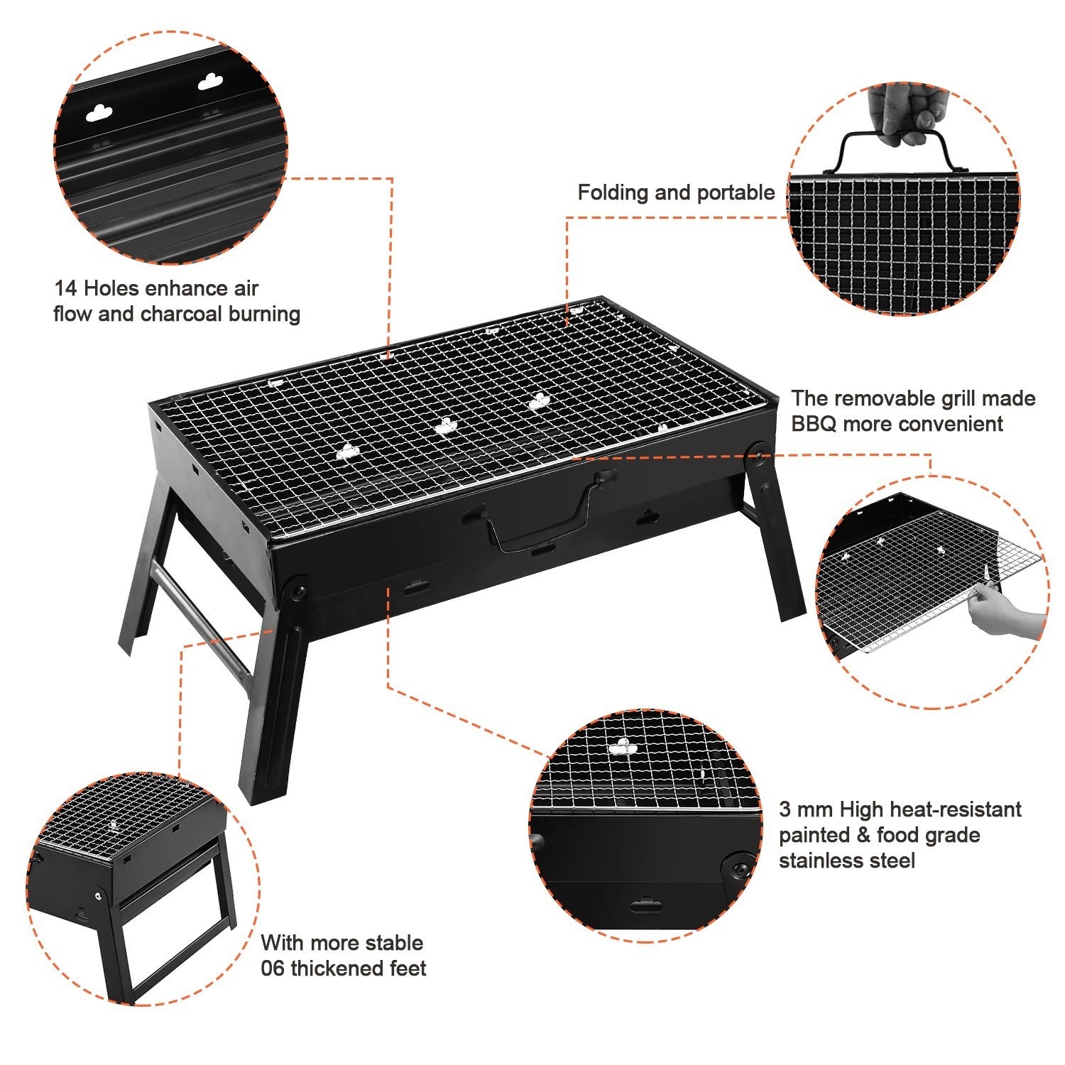 DURABLE STAINLESS STEEL MATERIALS:Constructed of high heat resistant painted food grade stainless steel which gets rusty hardly. When finished grilling; both pieces fit nicely inside the folded and the grill is removable and easy to clean.