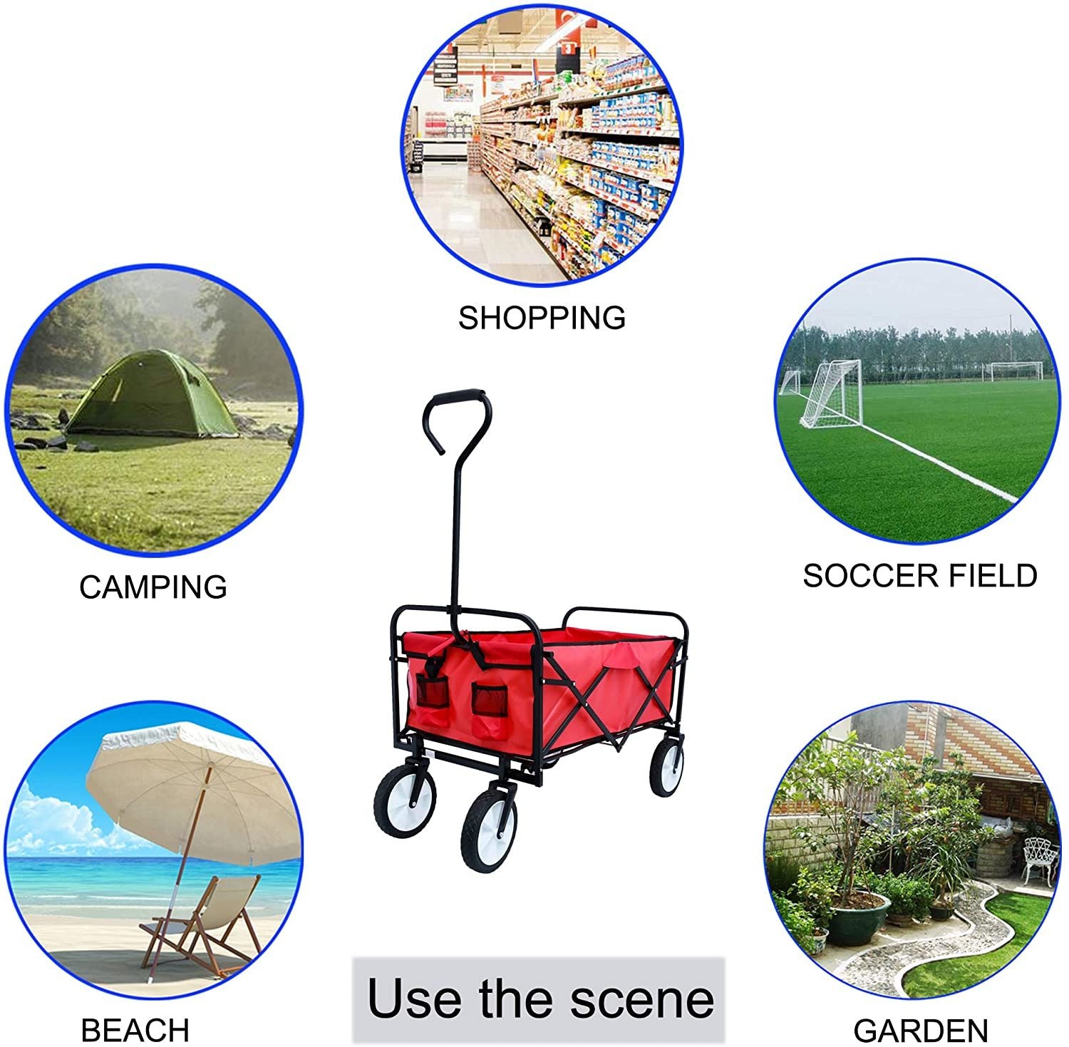 WIDE RANGE APPLICATIONS: Folding utility wagons are used in a wide range of applications, such as outdoor activities, beaches, gardens, parks, camping or shopping to make your life more convenient.