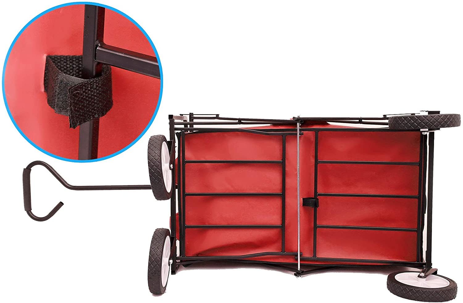 HIGH QUALITY: The utility wagon cart is made of strong steel and iron frame, fixed handle is firm and practical, rubber wheel is suitable for hard road and beach. Durable and waterproof 600D Oxford cloth is easy to clean and has a long service life.