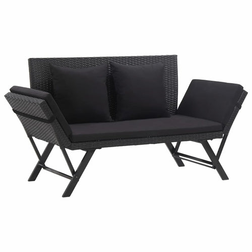 Garden Bench with Cushions 69.3" Black Poly Rattan