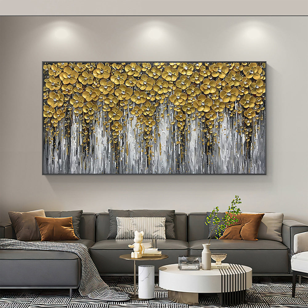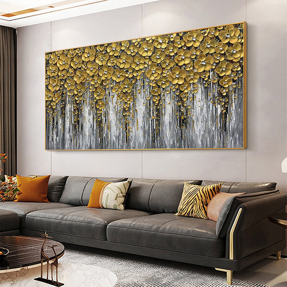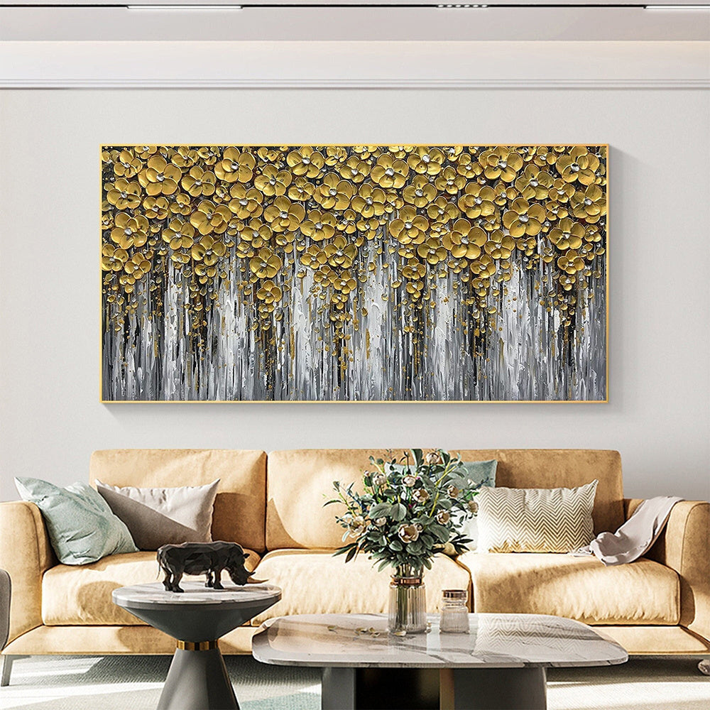 Hand Painted Oil Painting 3D Abstract Flower Landscape Oil Painting on Canvas Large Original Gold Floral Palette knife Texture Art Living Room Wall Art Home Decor