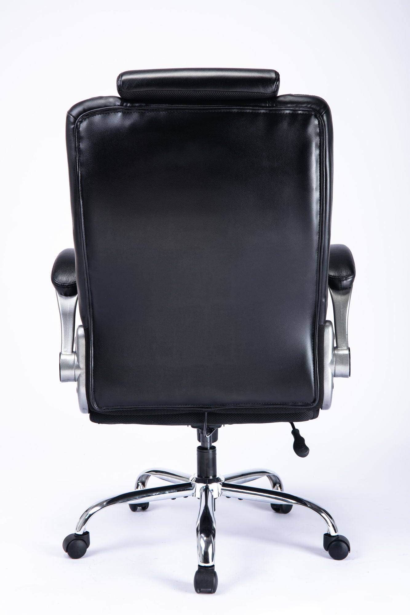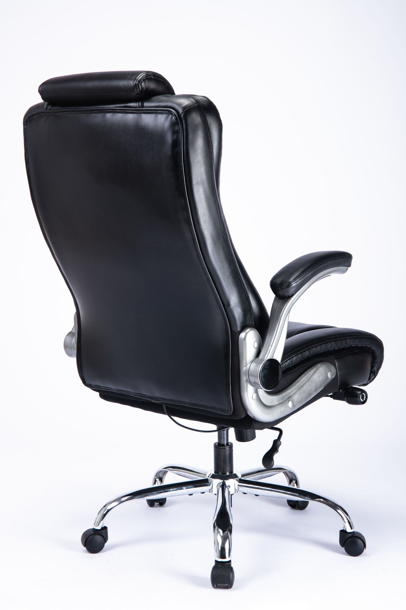 High Back Office Chair with Lifting Headrest, Adjustable Built-in Lumbar Support, Flip Arms, Executive Computer Chair Swivel Desk Chair Thick Padded Ergonomic Design for Back Pain (Black)