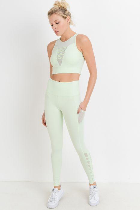 Highwaist Hybrid Mesh & Lattice Straps Full Pocket Leggings
