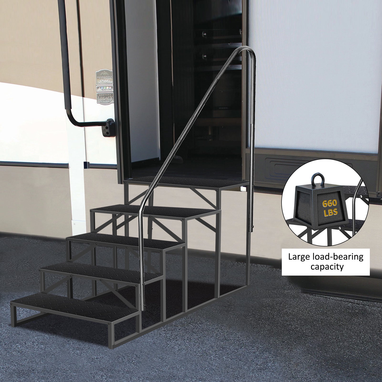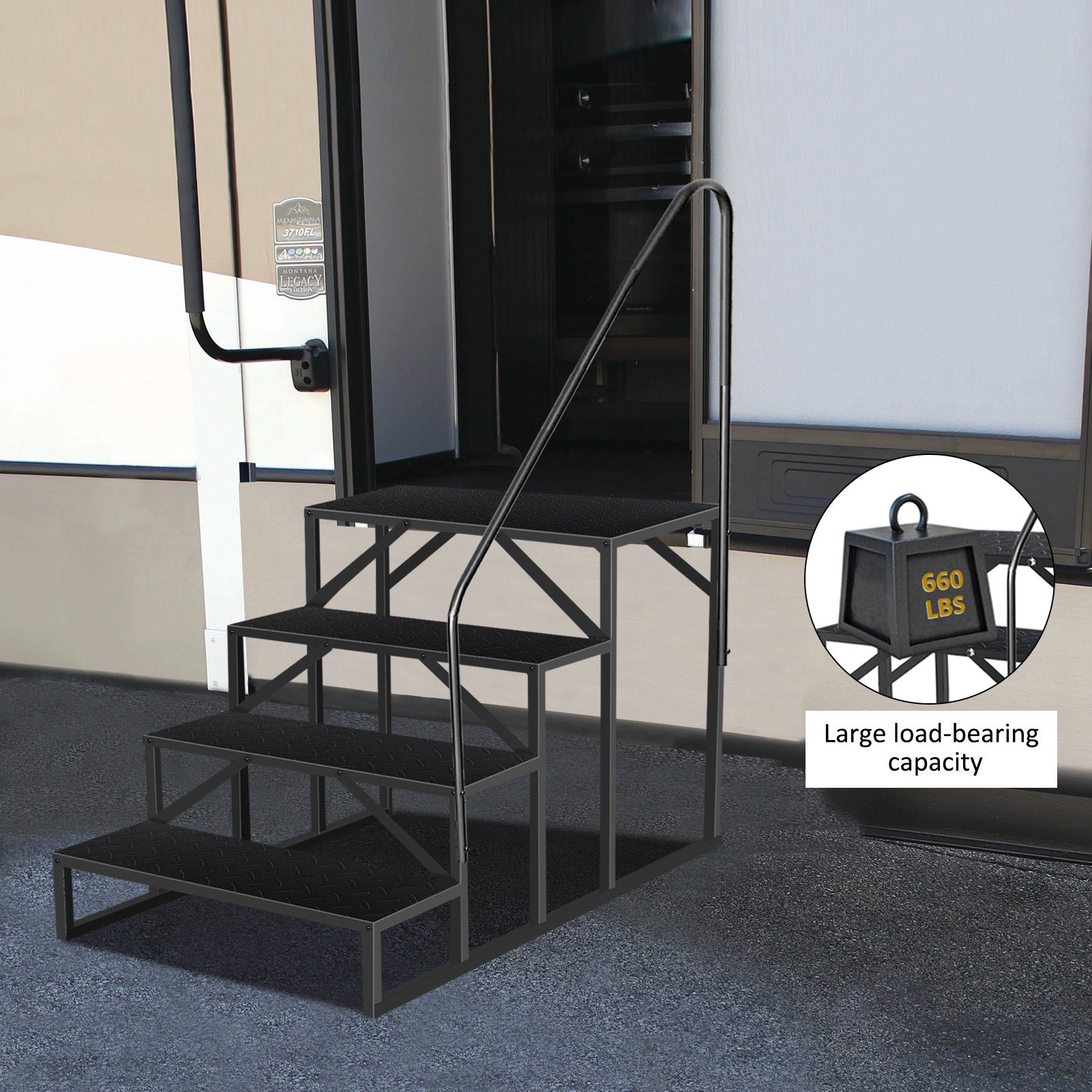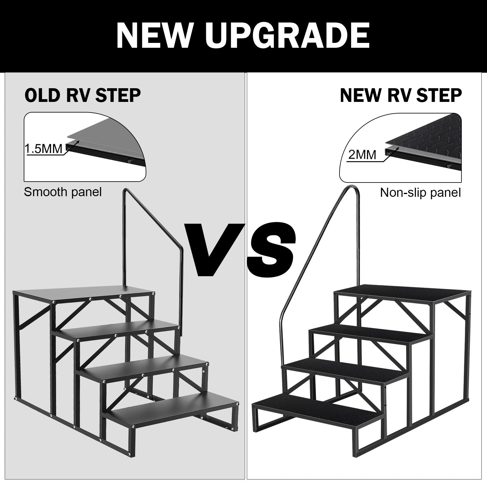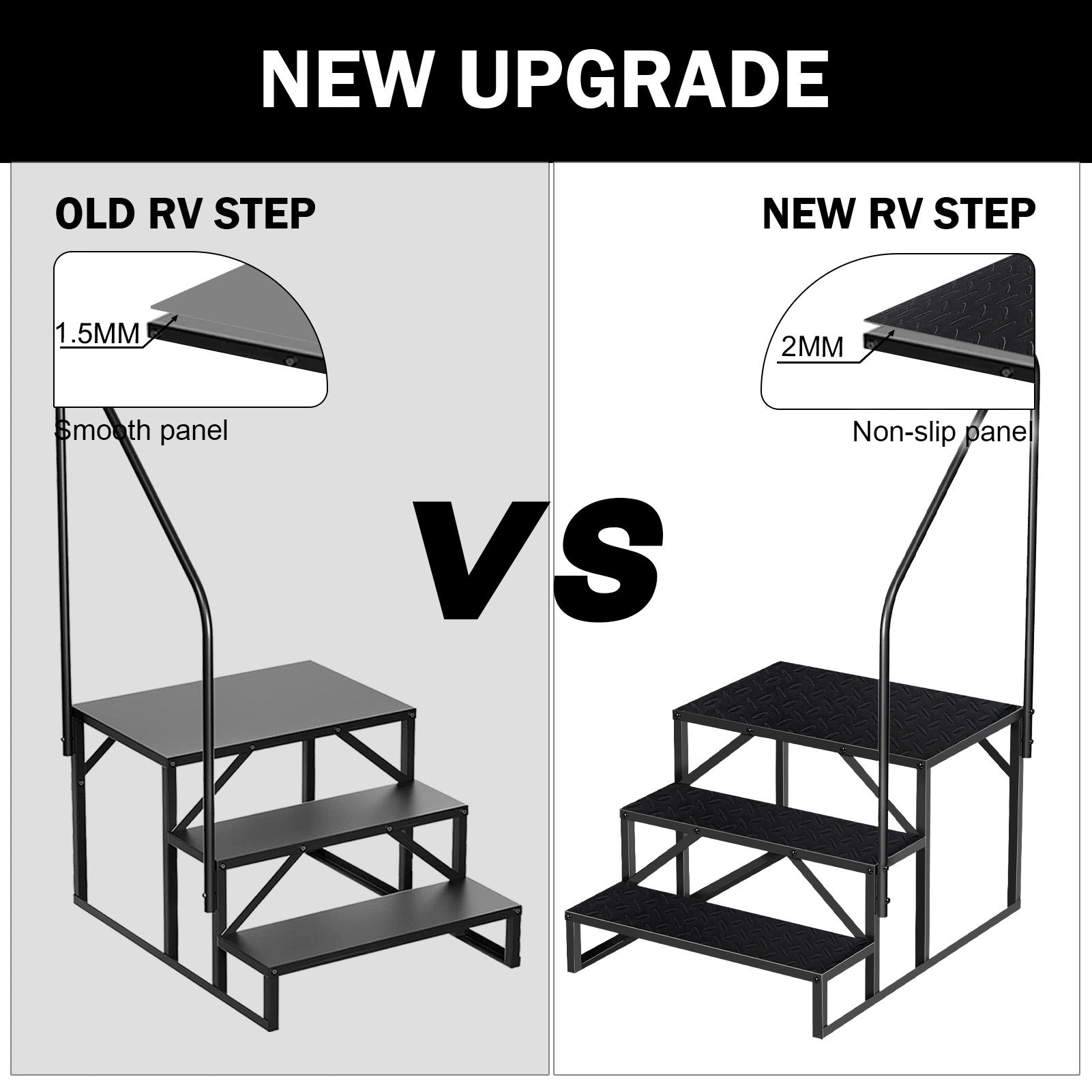 Sturdy Hot Tub Stairs:The triangular bars of our RV Ladders 3 steps provide better stability and reduce the risk of swings and falls during use. The thickened step slab made our outdoor stairs steps railing strong enough to withstand 440 pounds