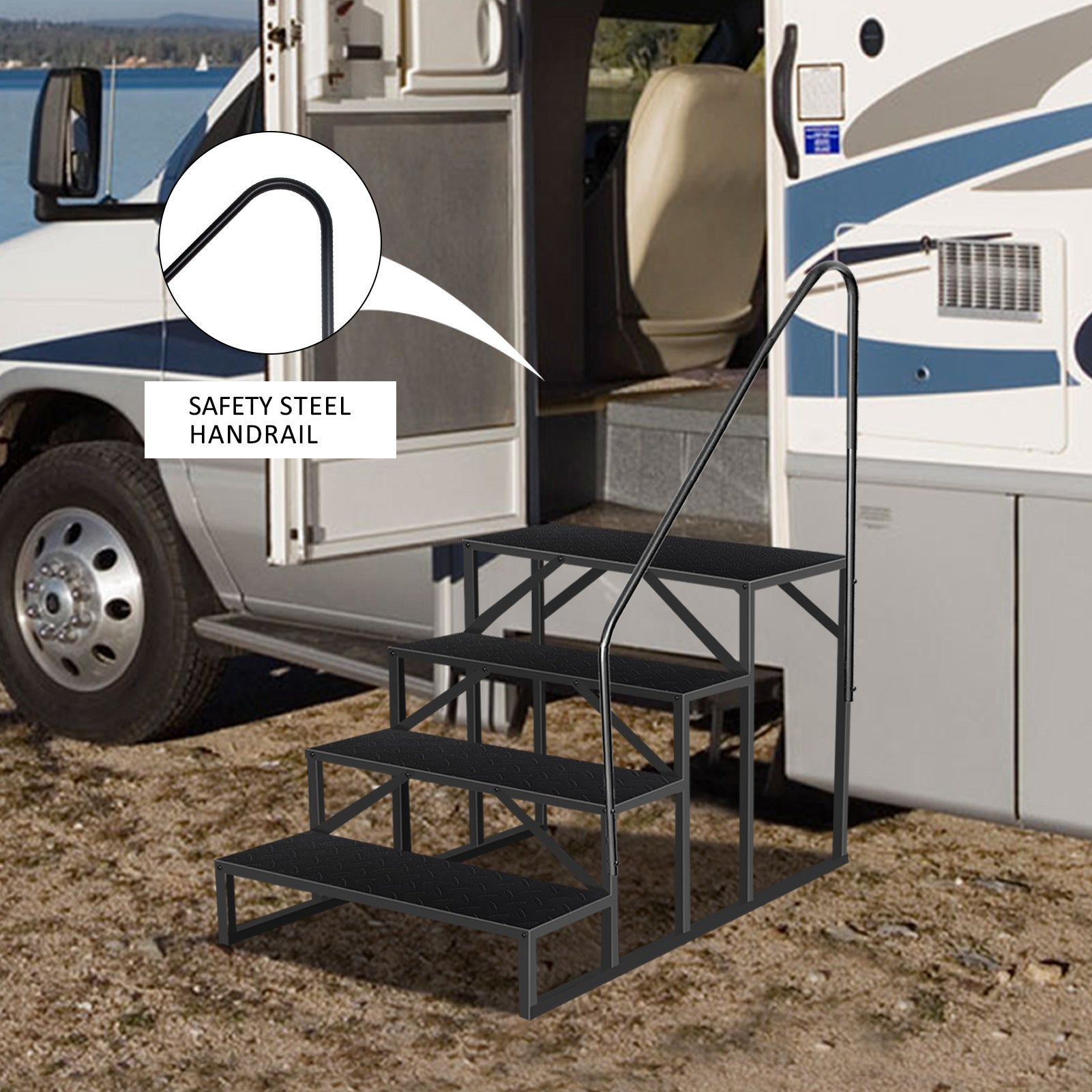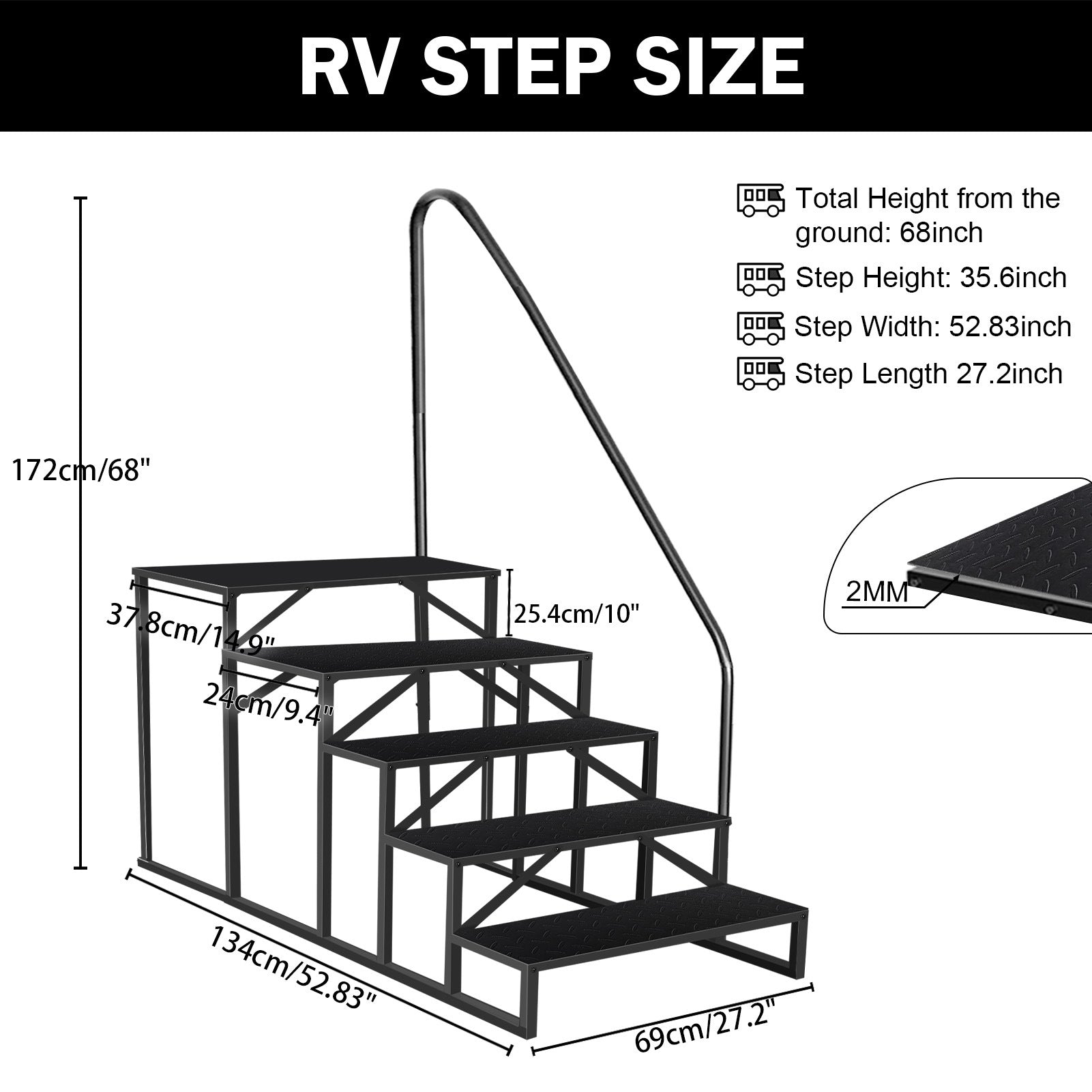 Multifunctional Steps for Outside: Our mobile home stairs are convenient car door steps that can be attached to the threshold of an RV, campervan, or travel trailer, making it easier to get in and out of the vehicle. It is also a portable spa step that can be used for hot tubs, and ground swimming spas