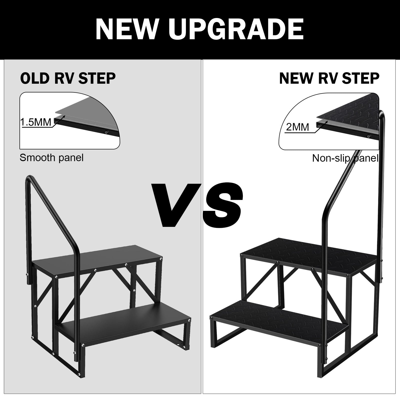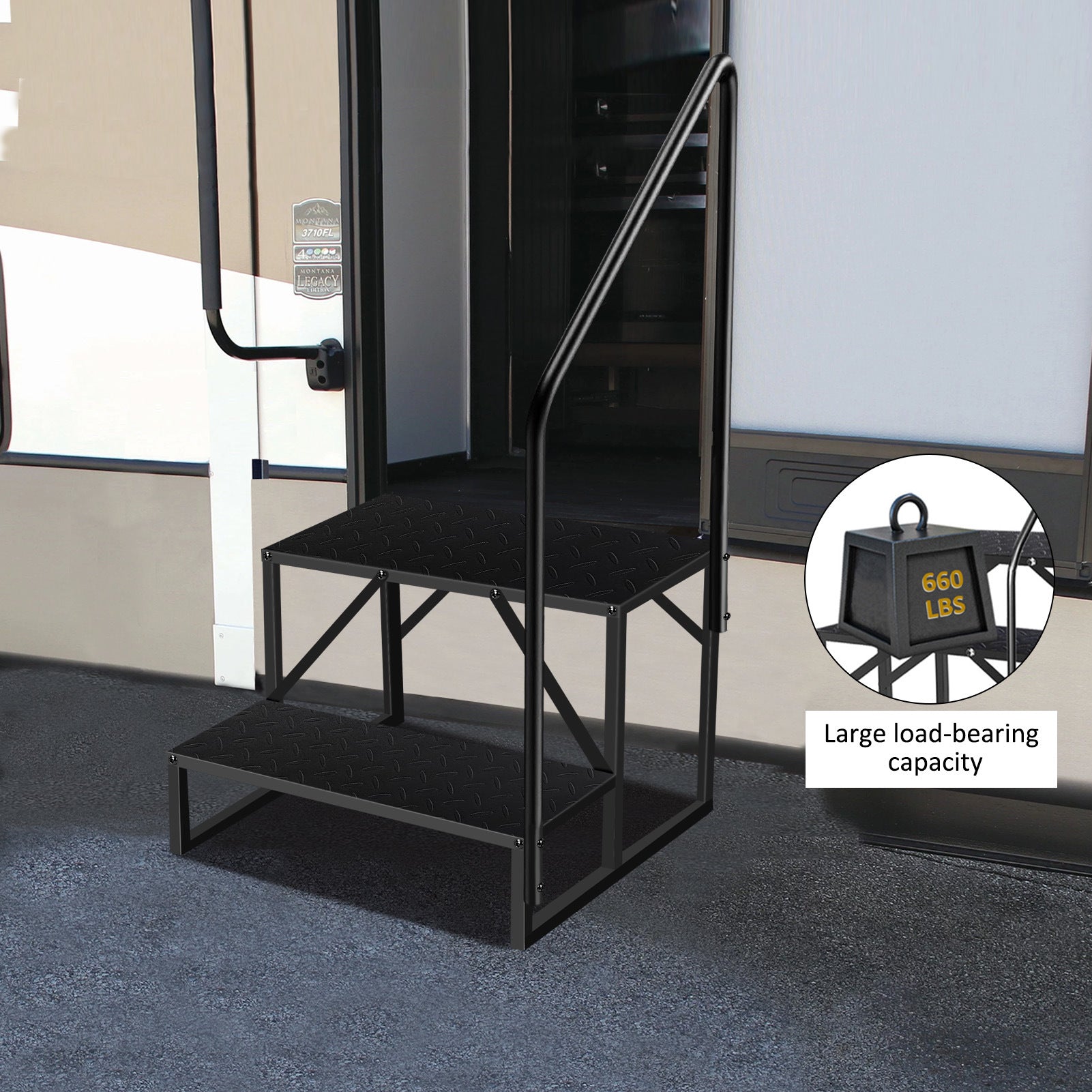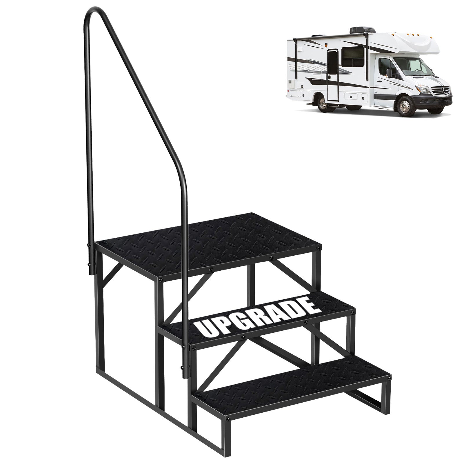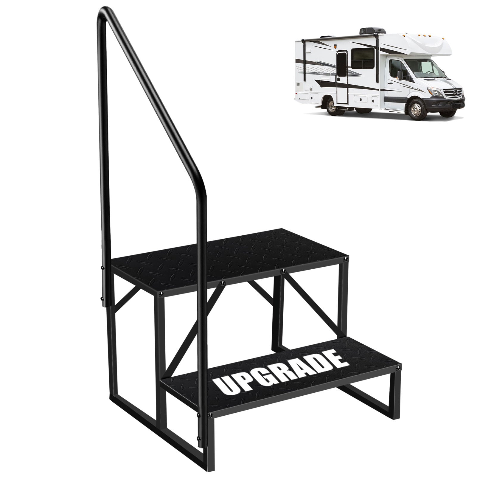 Hot Tub Steps Outdoor, 2 RV Steps with Handrail, Portable RV Stairs 3 Step, Heavy Duty Truck Camper Steps Ladders for Travel Trailers, 5th Wheel, Motor Home, Spa, and Porch