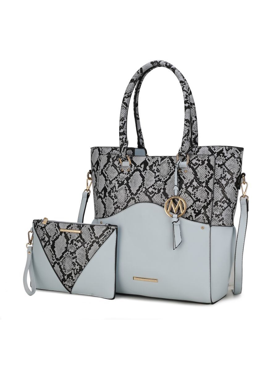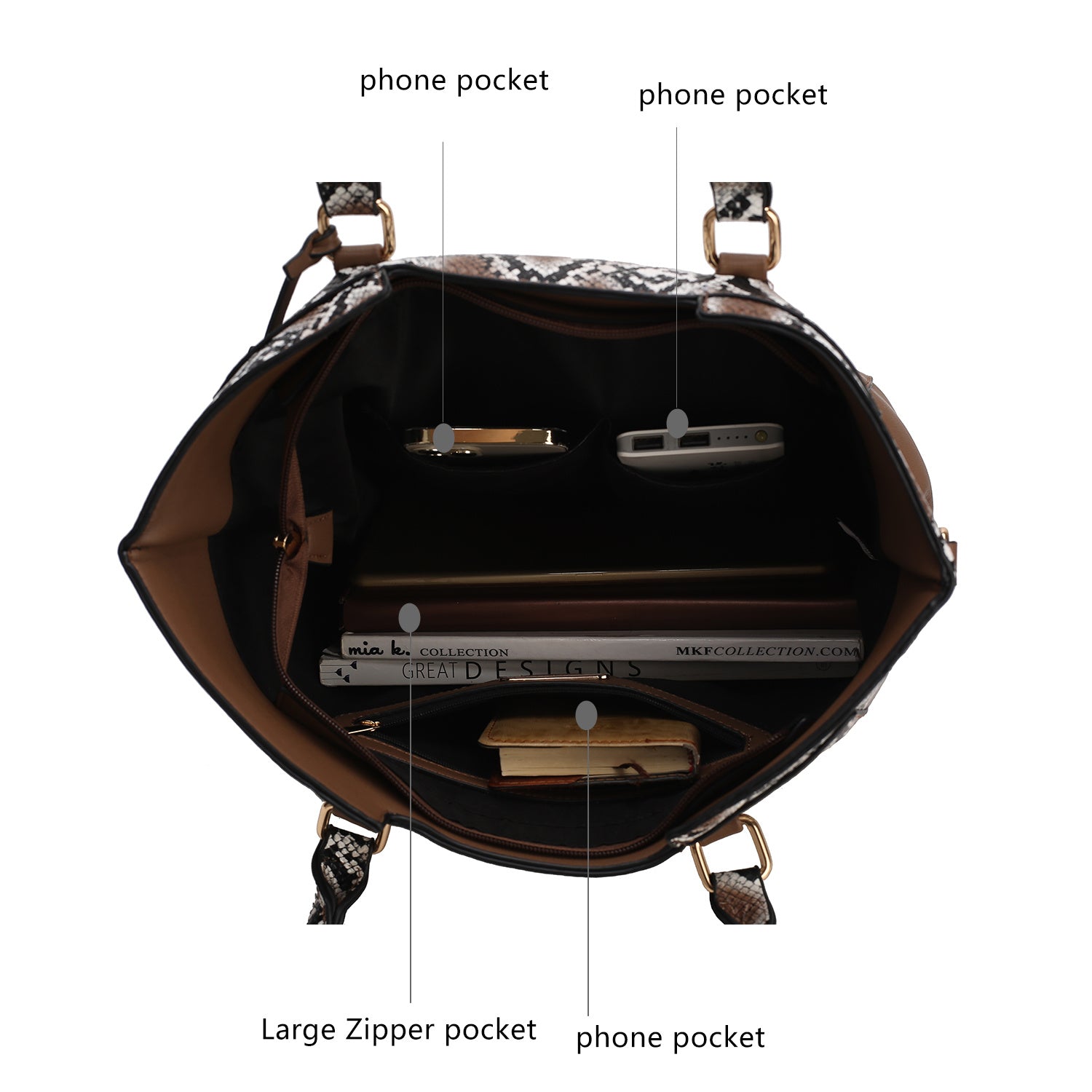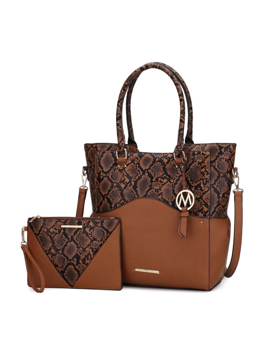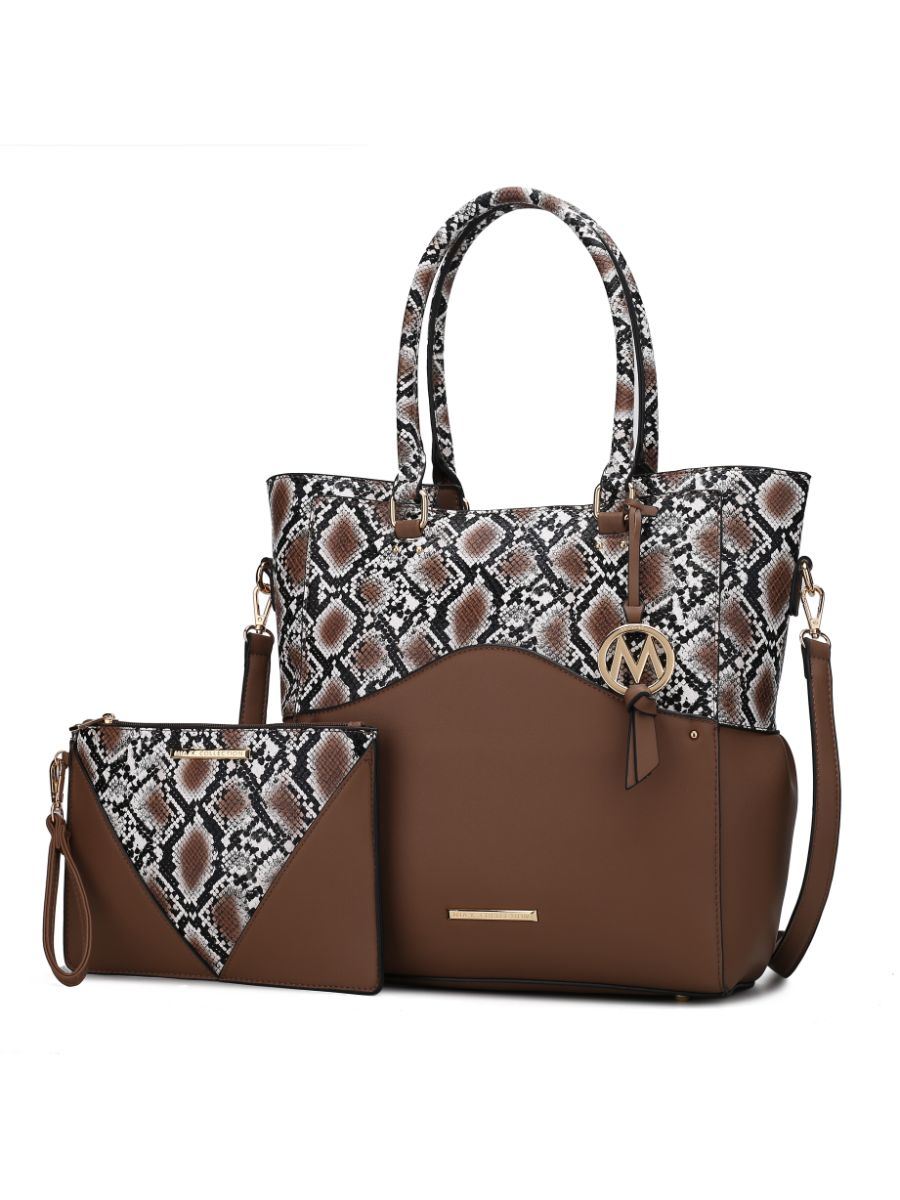Iris Snake Embossed Vegan Leather Women Tote Bag with matching Wristlet Pouch