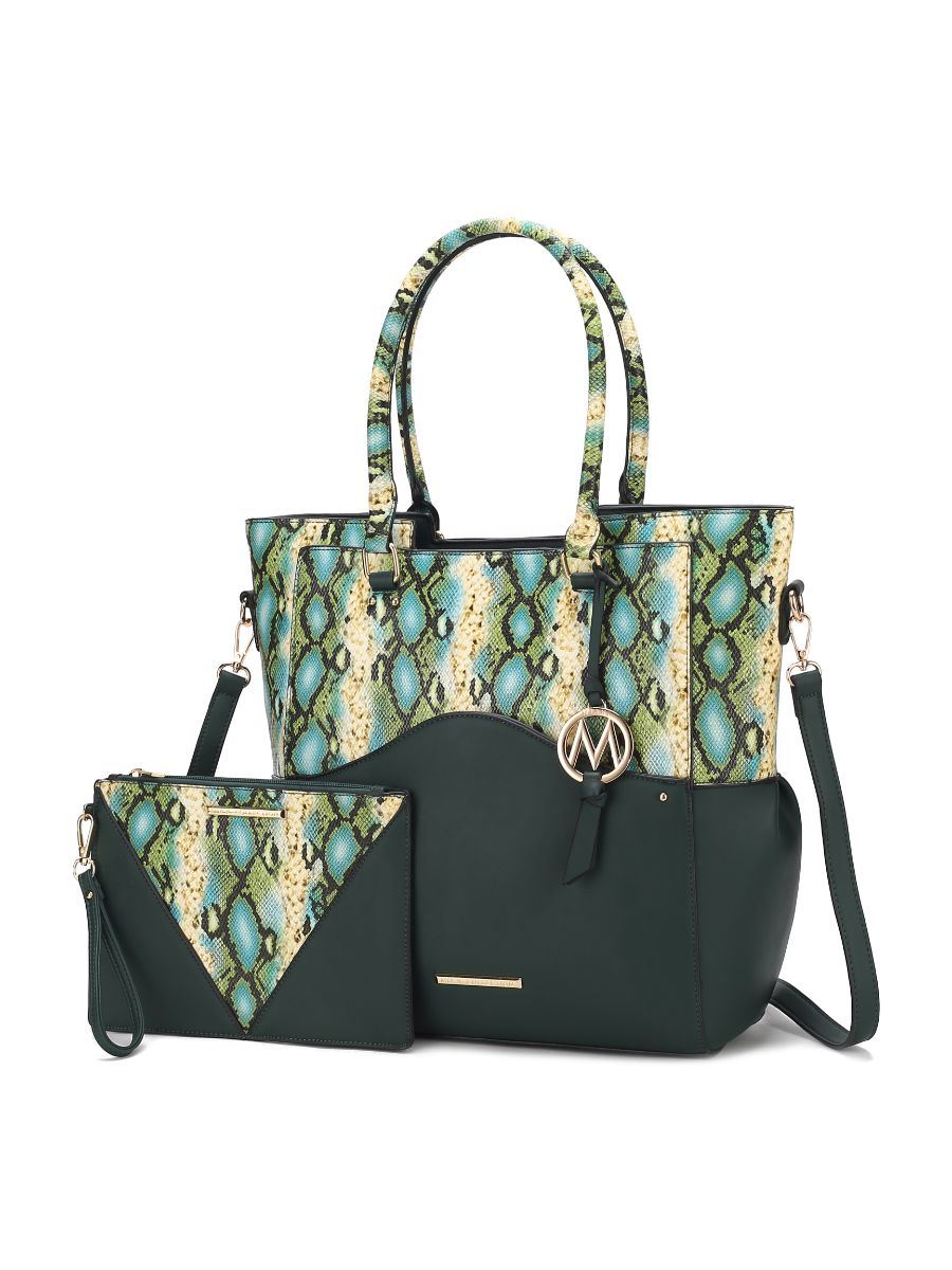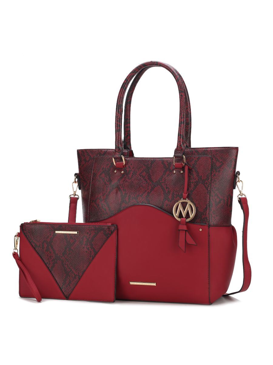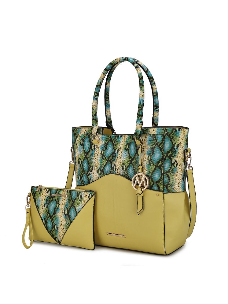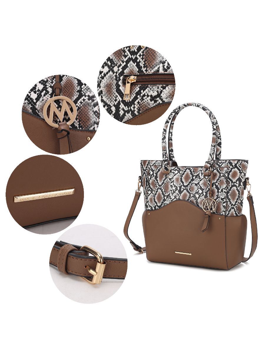 Iris Snake Embossed Vegan Leather Women Tote Bag with matching Wristlet Pouch