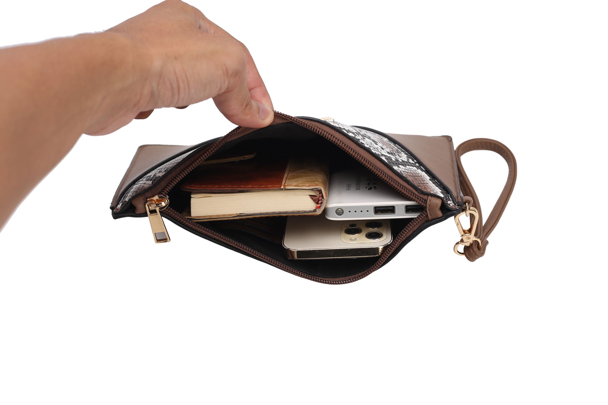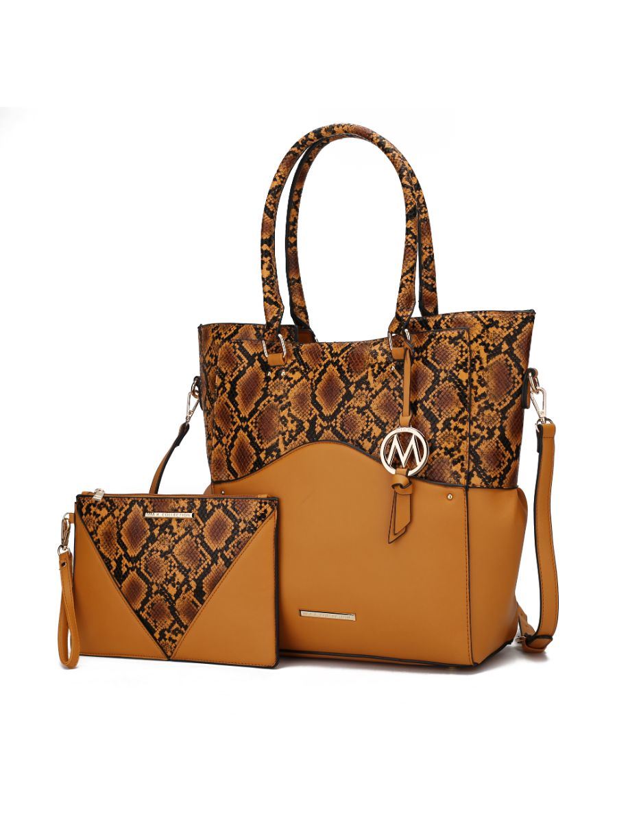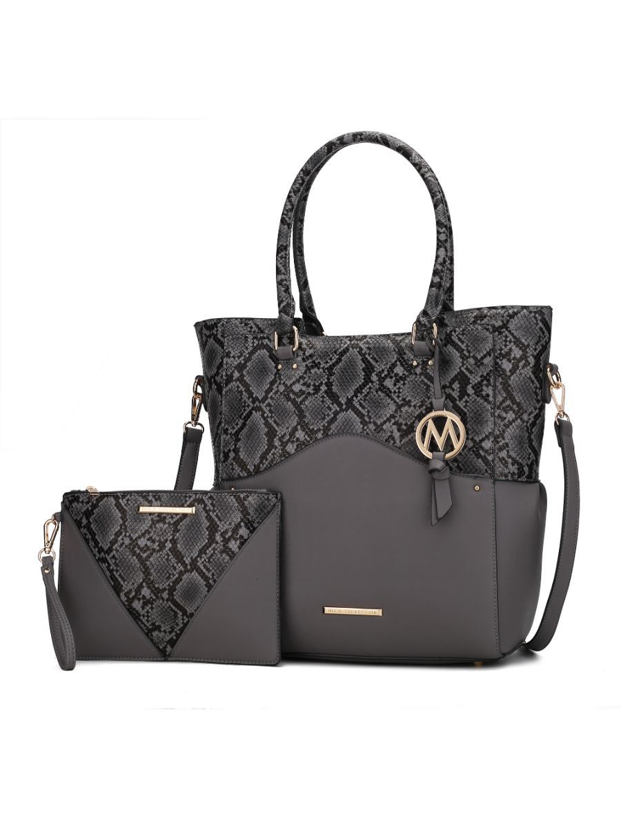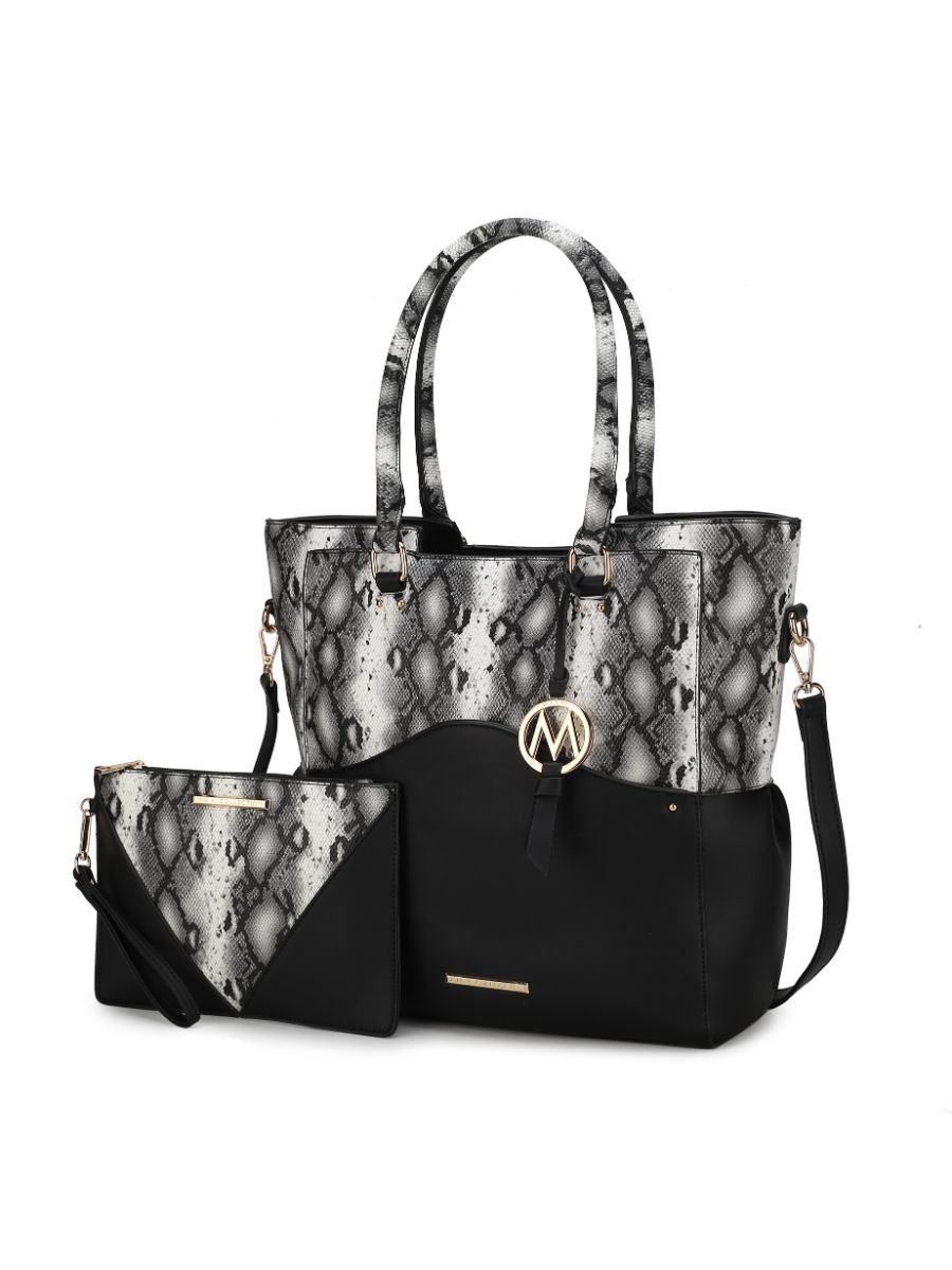 Iris Snake Embossed Vegan Leather Women Tote Bag with matching Wristlet Pouch
