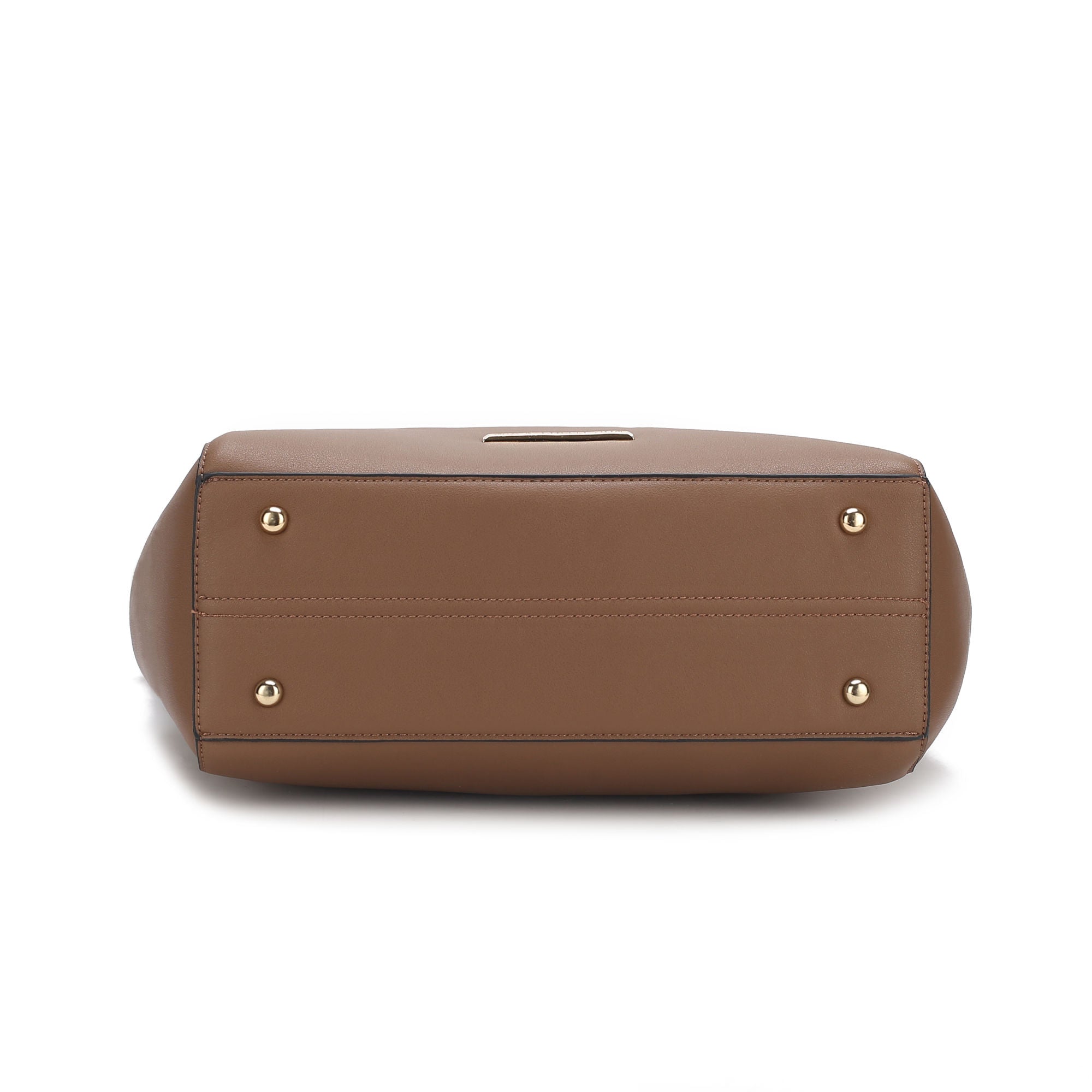 - Introducing the Iris Tote Bag, a stylish and trendy handbag designed for women. It is made of high-quality vegan leather that has been embossed to resemble snakeskin, matching with smooth trims, giving it a luxurious and exotic look. This style is designed with gold-tone embellishment.