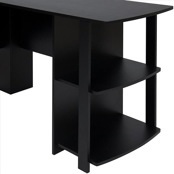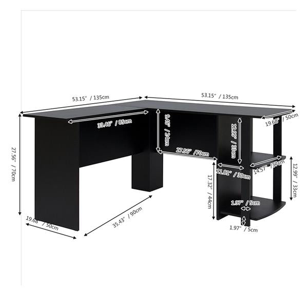 L-Shaped Wood Right-angle Computer Desk with Two-layer Bookshelves