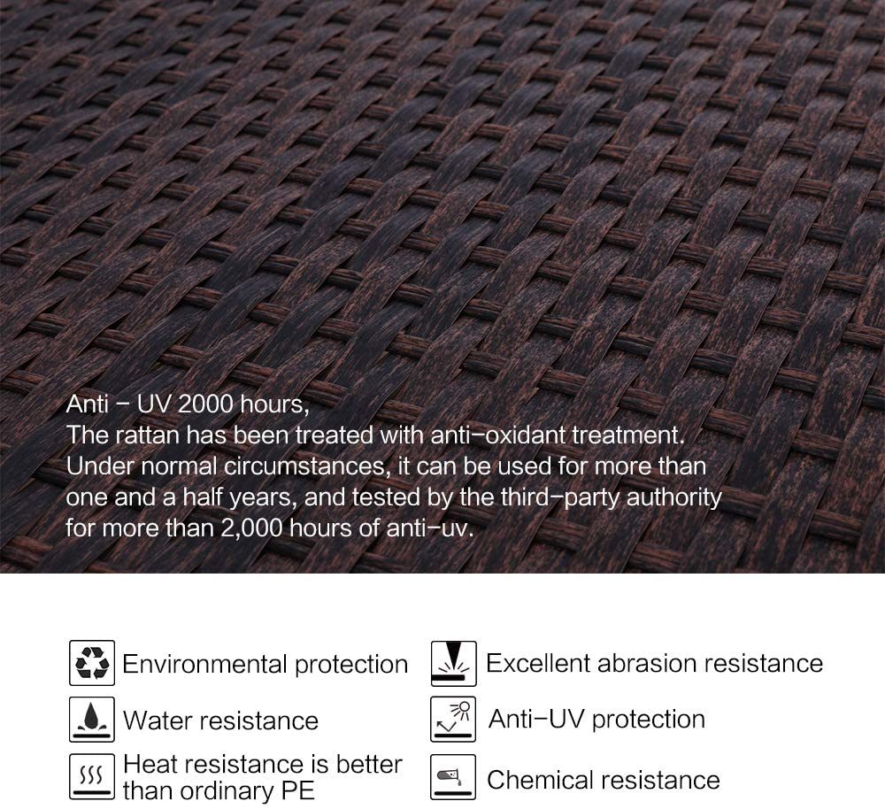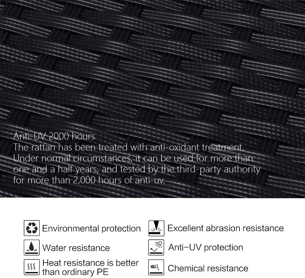 Brand New PE Wicker with no recycle material and SAFE to human.Multi-testing wicker to ensure high resistance to weather/sunlight/water.