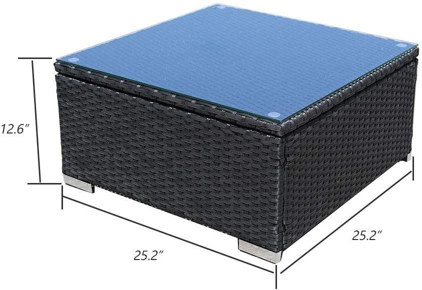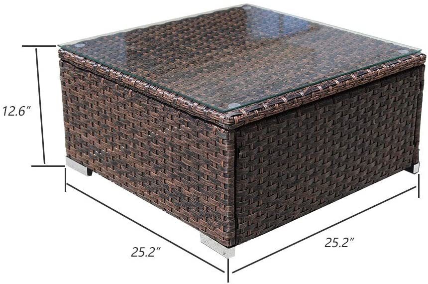 outdoor coffee table with the installation instruction /Install video, it is convenient to assemble without maintenance. Dimensions: 25.2in(L) x 25.2in(W) x 12.6in(H).
