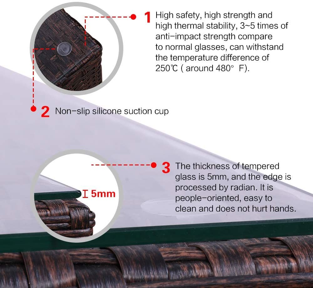 outdoor rattan furniture coffee table is suitable for outdoor/indoor terrace, lawn, yard, backyard, porch, garden, poolside and balcony.