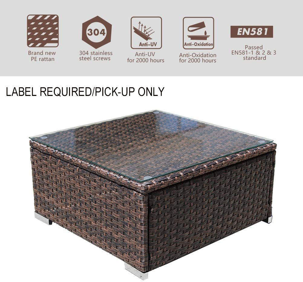 outdoor patio wicker coffee table with brand new PE rattan, high quality stainless steel of screws, UV-Resistant for 2000 hours, Rust-Resistant over 2000 hours, all-Weather patio rattan furniture.