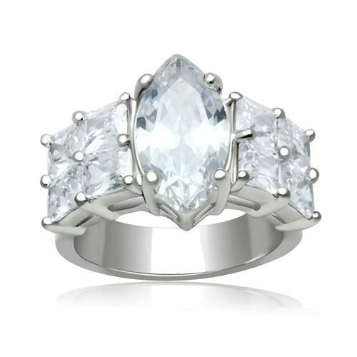 LO2091 - Rhodium Brass Ring with AAA Grade CZ in Clear