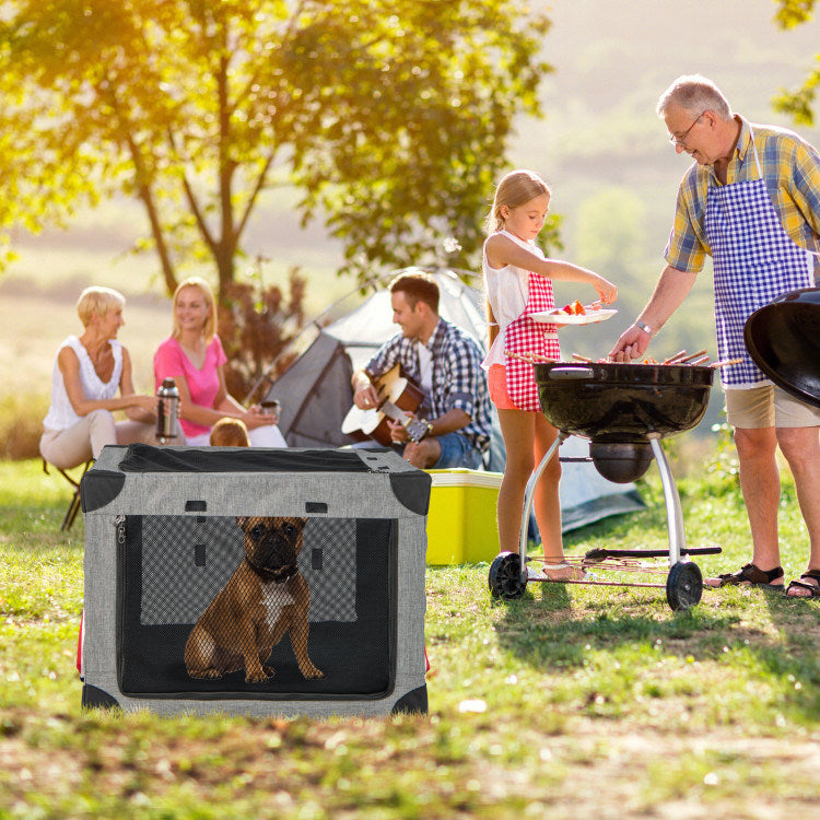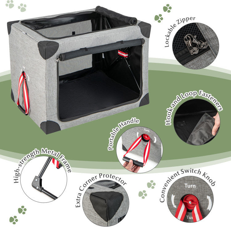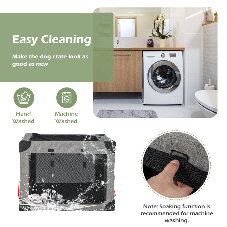 M/L 3-Door Dog Crate with Removable Pad and Metal Frame