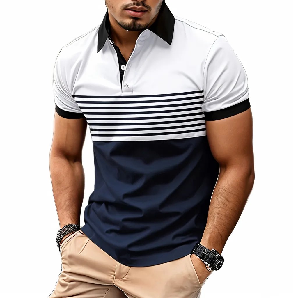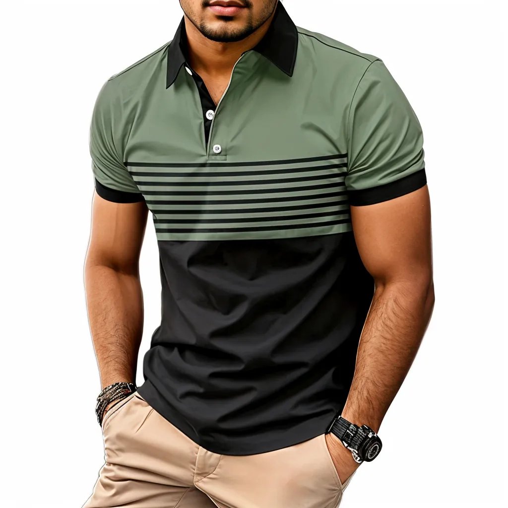 Mens Casual Stripe Short Sleeve Polo Shirt