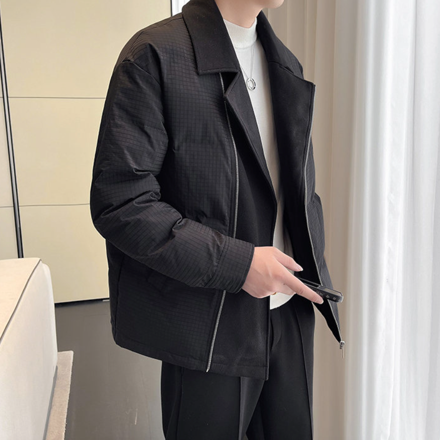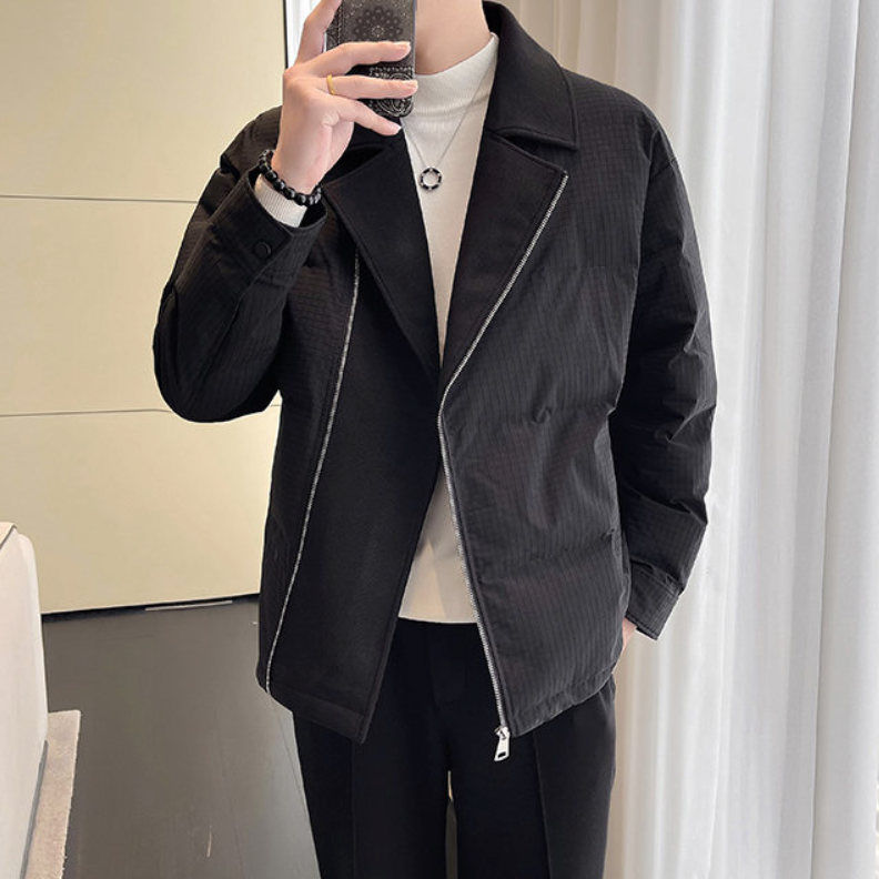Elevate your style with the Men’s Fold-Over Zip Jacket. Sleek, versatile, and supremely comfortable, this jacket is the perfect blend of form and function. Crafted from premium materials, it effortlessly transitions from casual to professional, making it an essential piece for the modern man.