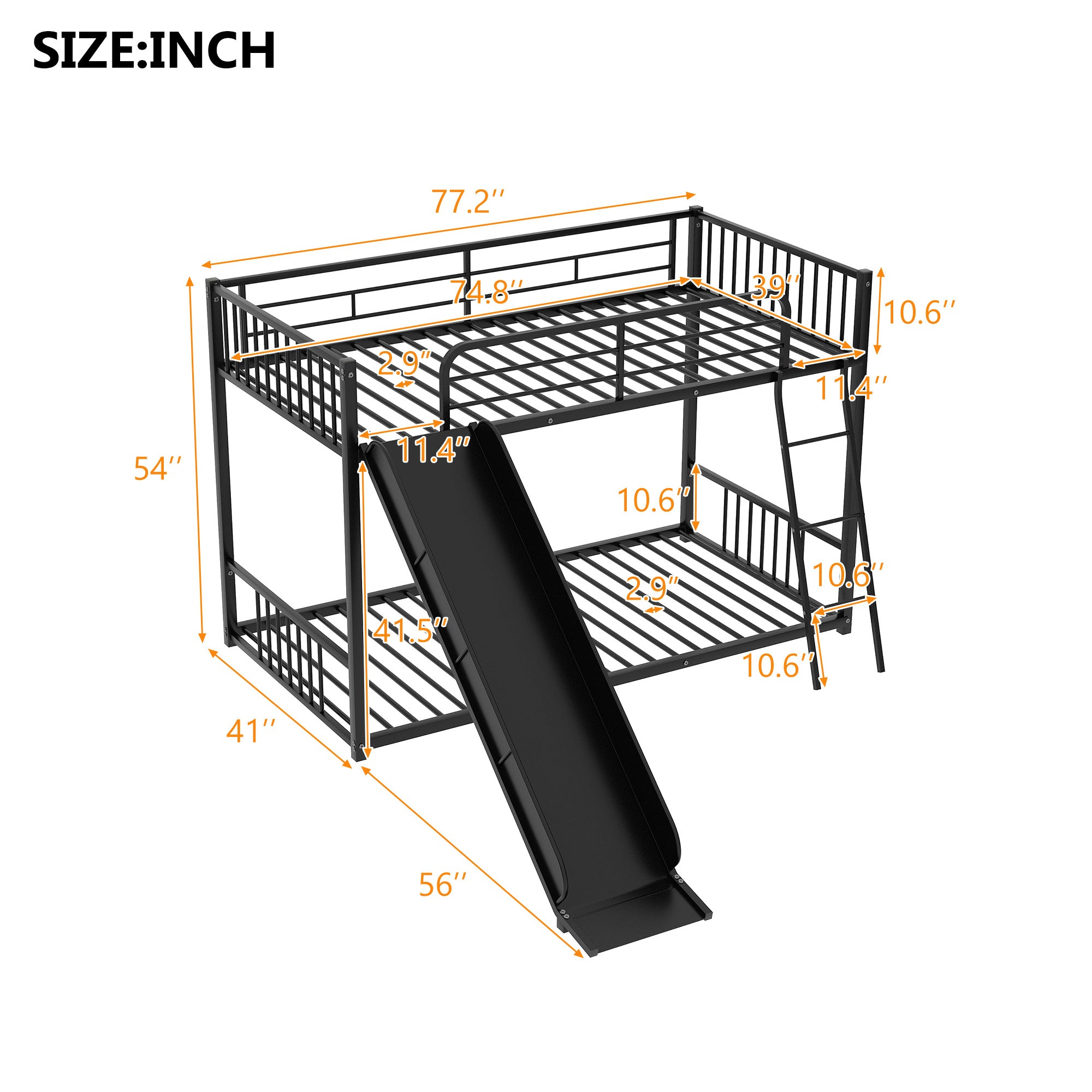 Whether your little one’ share a room, or they just love to have sleepovers, this bunk bed is the perfect pick. Bringing style and function to their space, it showcases a streamlined frame crafted from metal with headboards, footboards, railings and slide. Sloping stairs minimize the difficulty of climbing, Reduce foot discomfort. Slides increase children's fun. Some assembly is required.