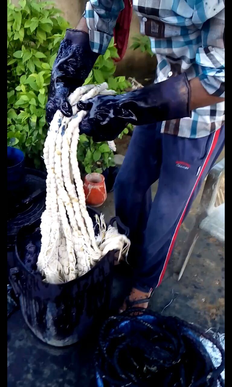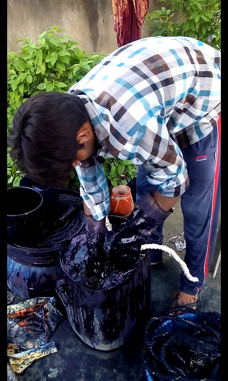 - Materials: Soft cotton fabric, indigo dye, plant dye