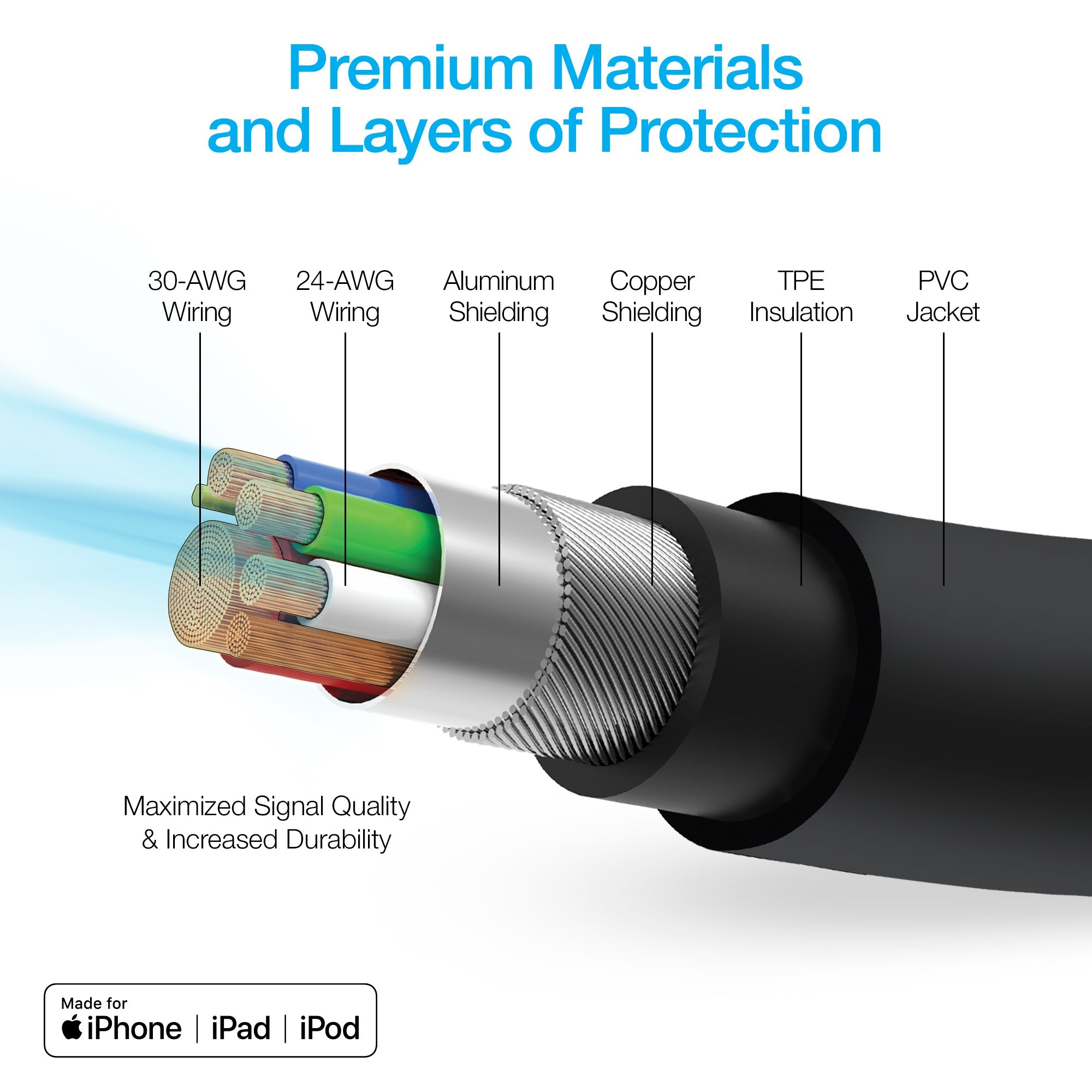 Special Features:• MFi Certified for use with Apple Devices