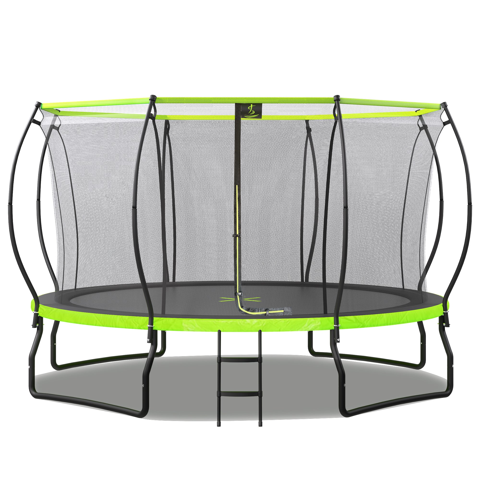 New Design 14FT Trampoline for Kids with Upgraded Arc Composite Pole and Safety Enclosure Net, Ladder and 8 Wind Stakes, Round Outdoor Recreational Playset Balanced Physical Training Trampoline