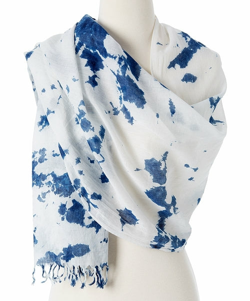 Lightweight and flowing, this tie-dyed scarf is made in a safe working environment in India. Size measures 74" X 19" and it comes in four natural colors.