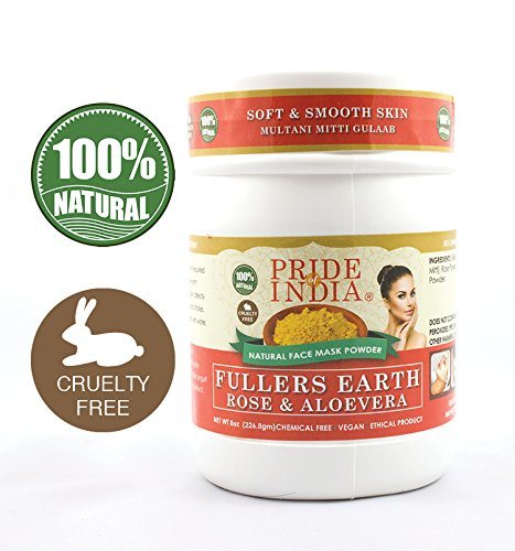 Pride Of India - Fuller's Earth Indian Clay Face Mask Powder w/Rose & Aloevera, Half Pound Jar, 100% Natural