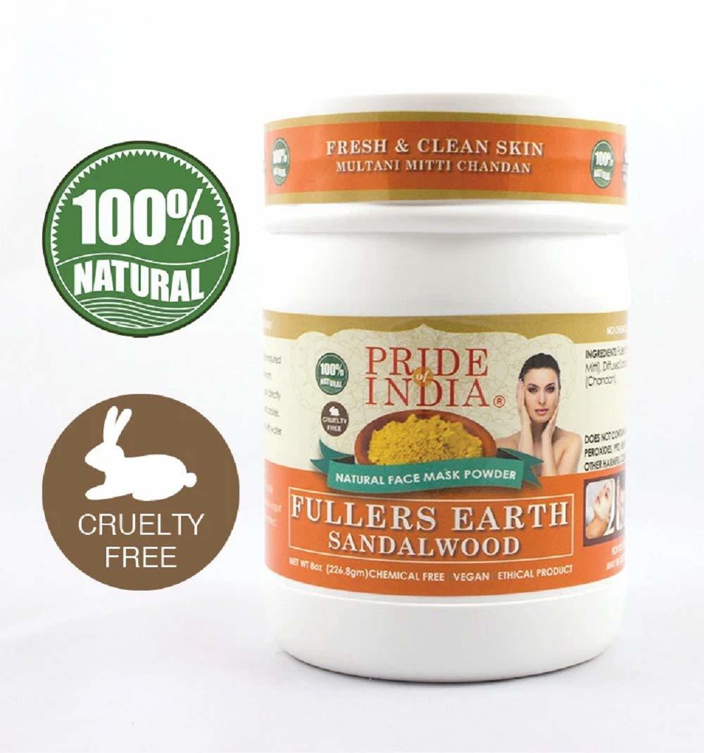 Pride Of India - Fuller's Earth Indian Clay Healing Face Mask Powder w/ Sandalwood, Half Pound Jar, 100% Natural