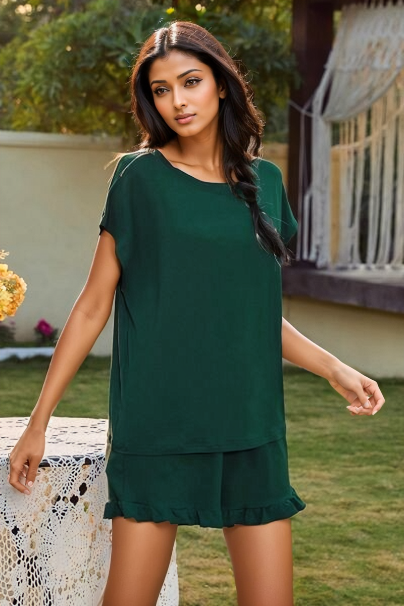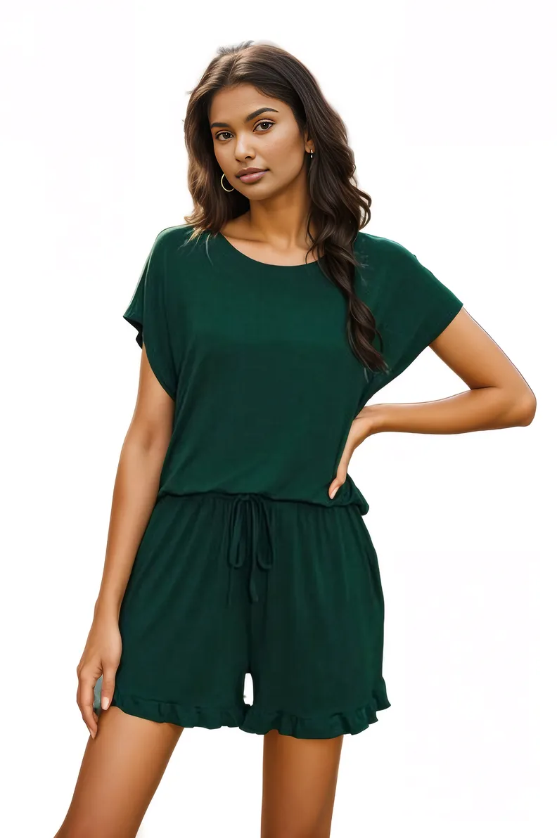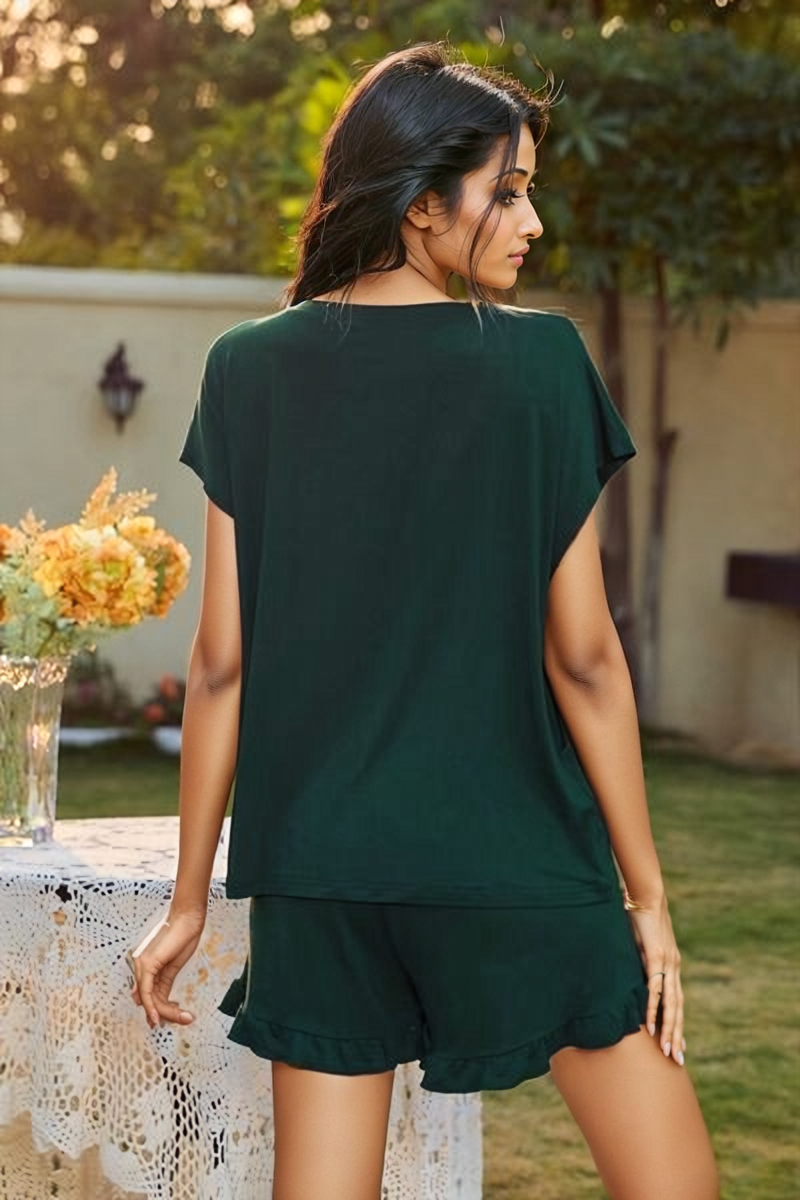 Round Neck Short Sleeve T-Shirt and Drawstring Shorts Lounge Set