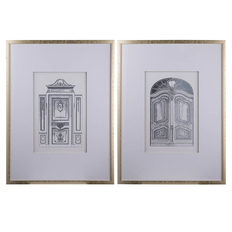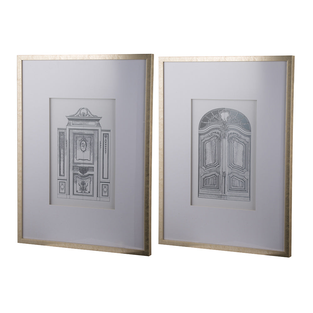 Display your love for classic architecture with this pair of pencil art prints. Each one features a different style of ornate door the intricate renderings present something new to notice with each glance. These would be perfect for a home library, office, or even an entryway.