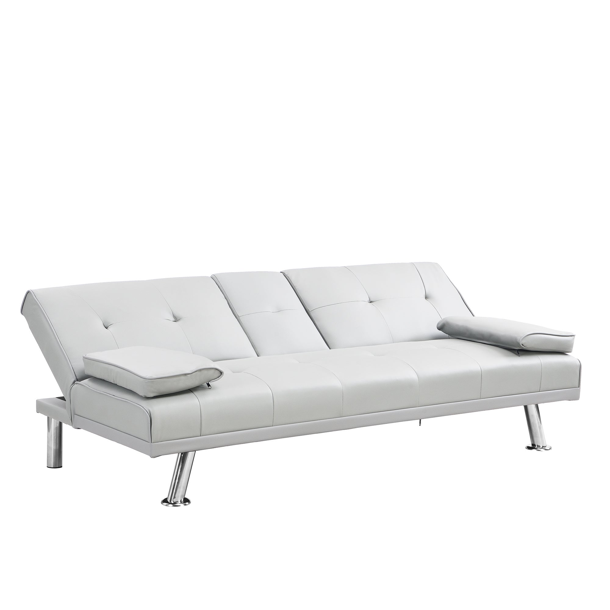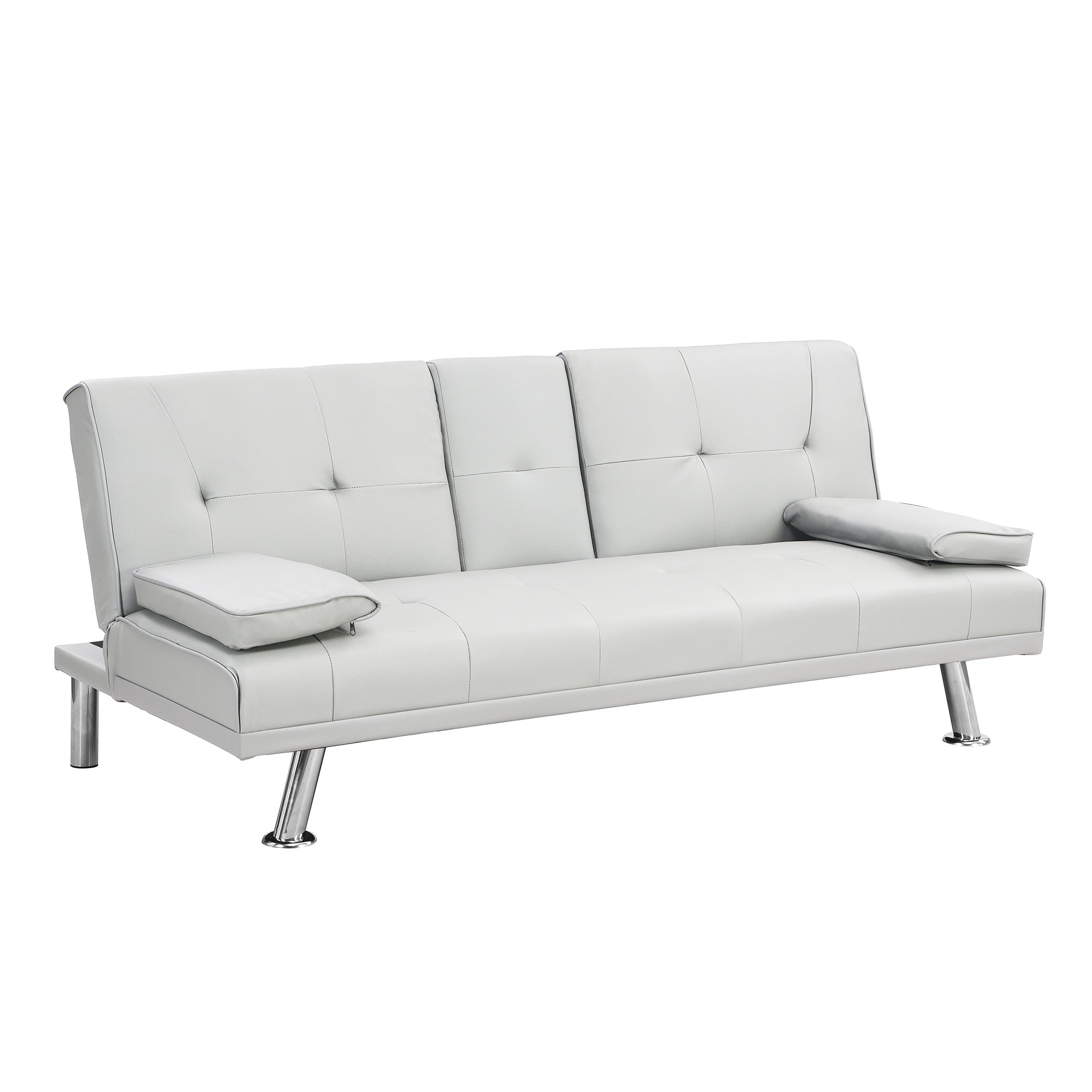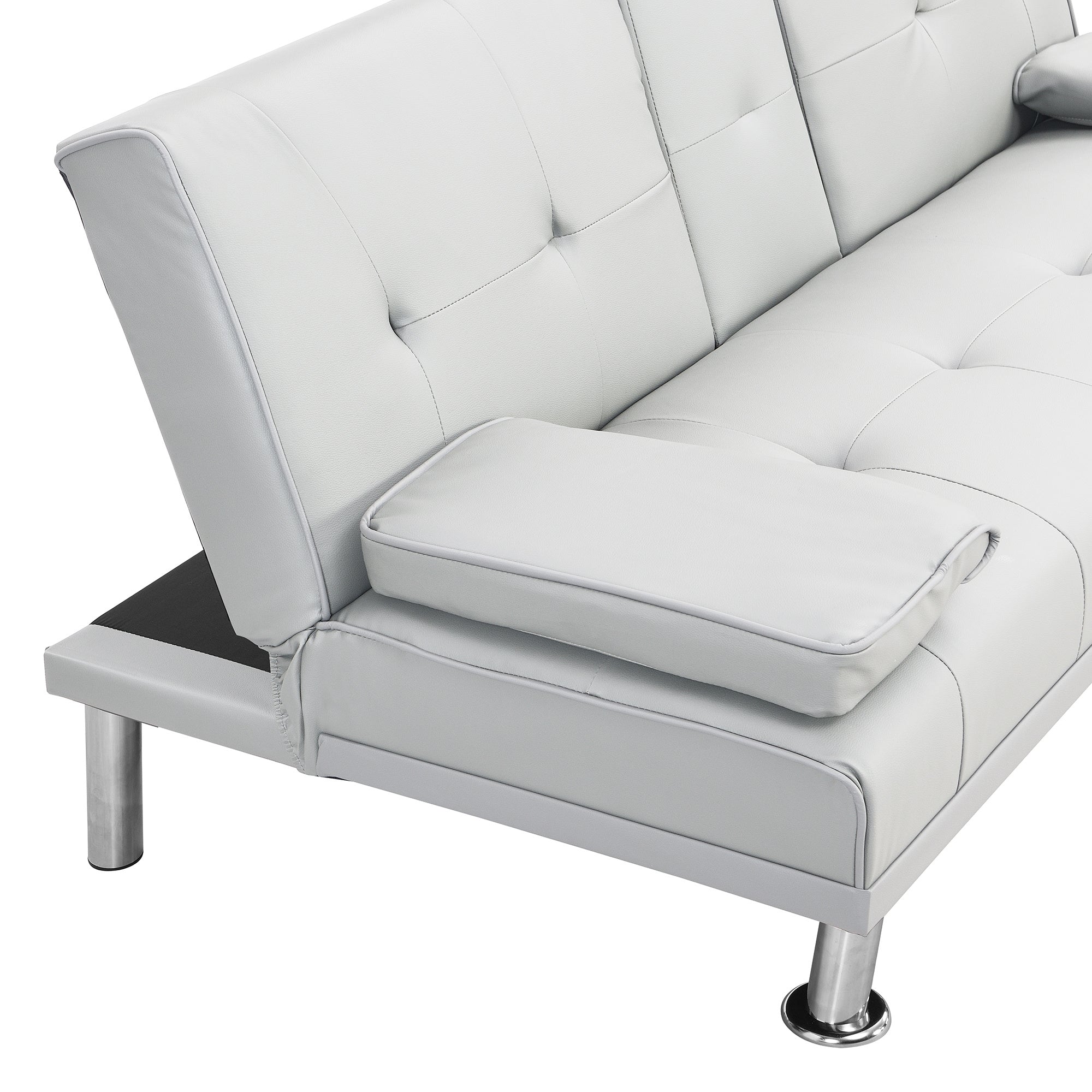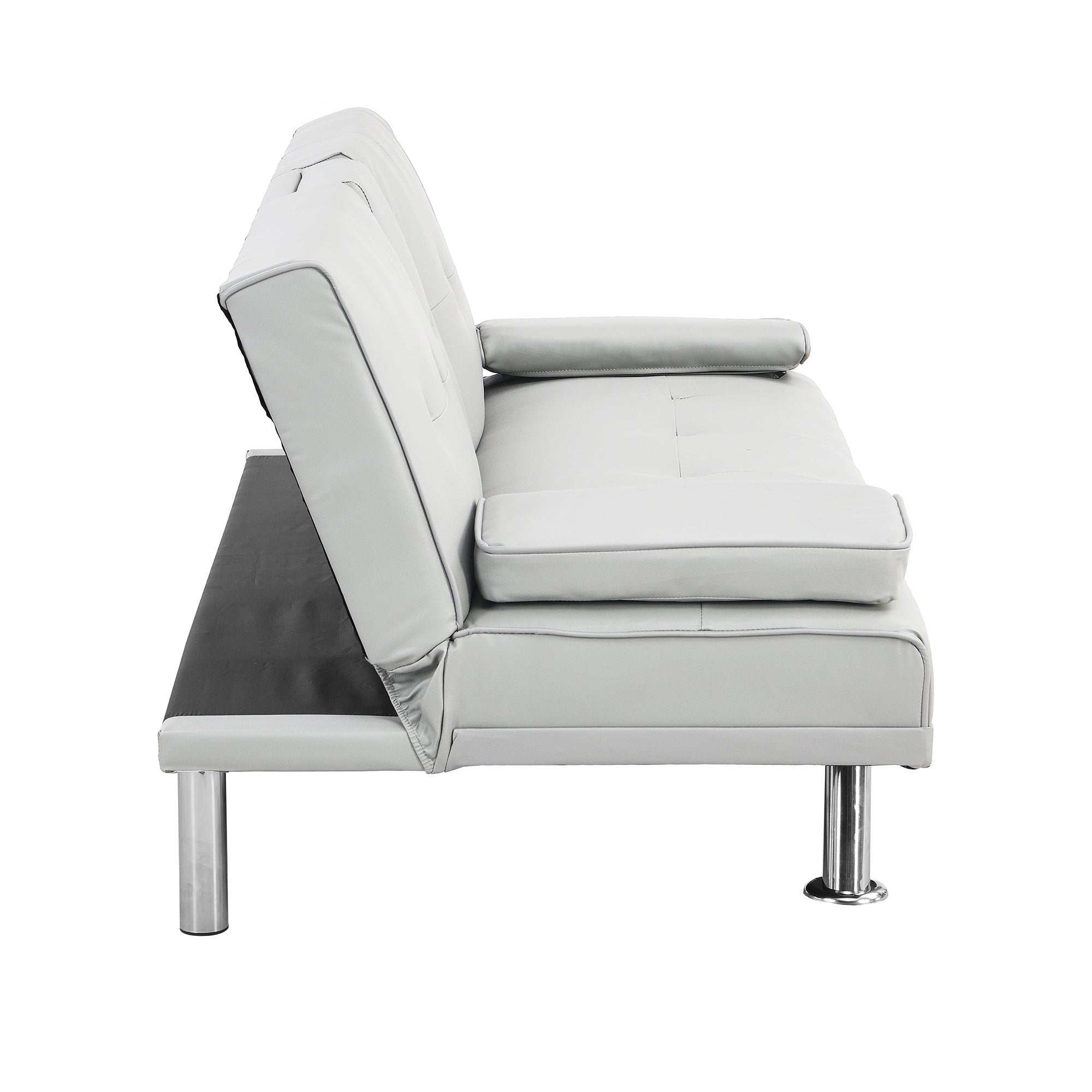 sofa bed with Armrest two holders WOOD FRAME, STAINLESS LEG, FUTON SOFA PVC