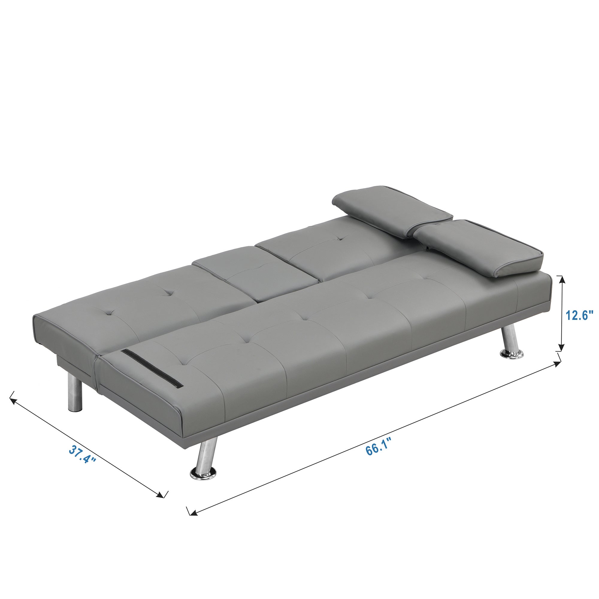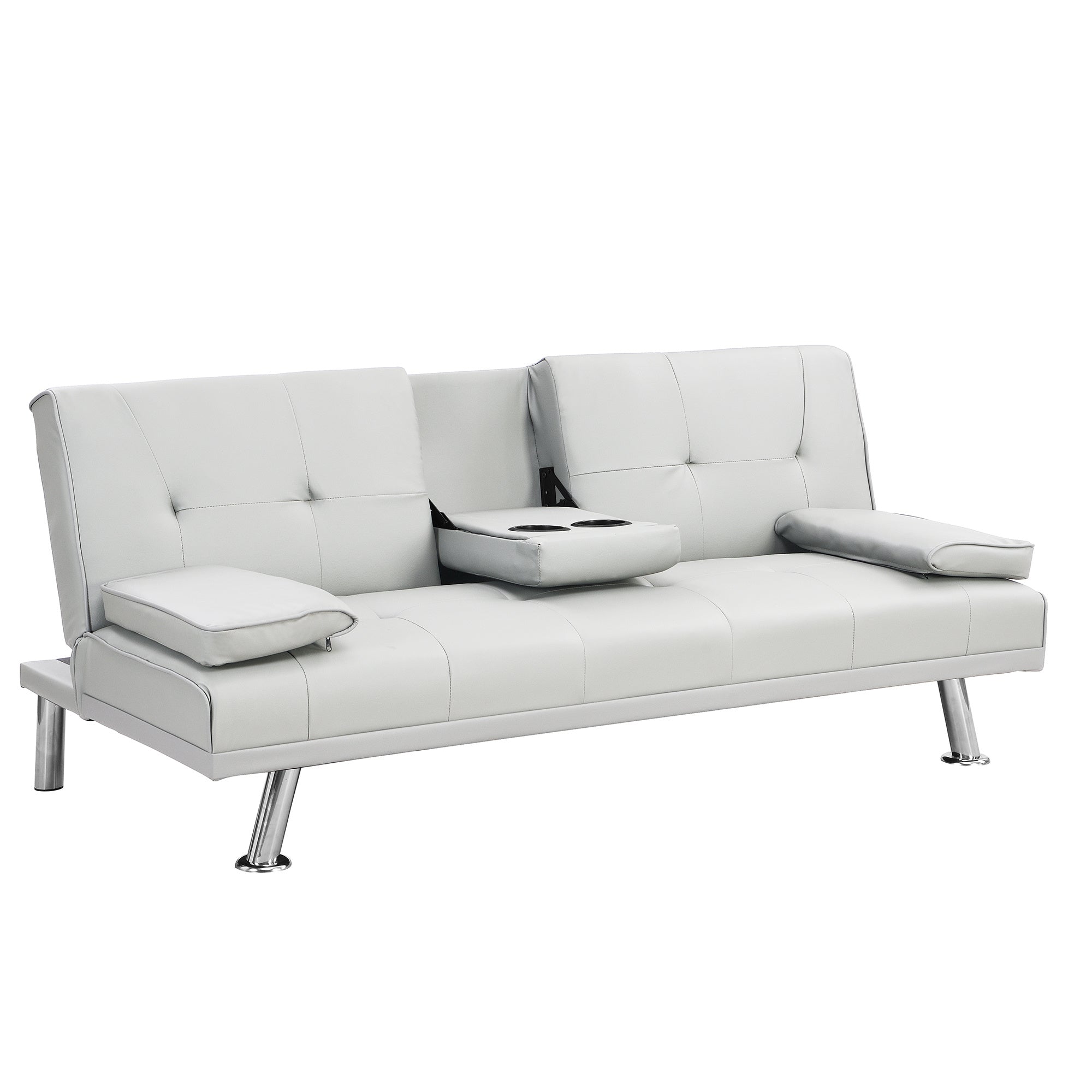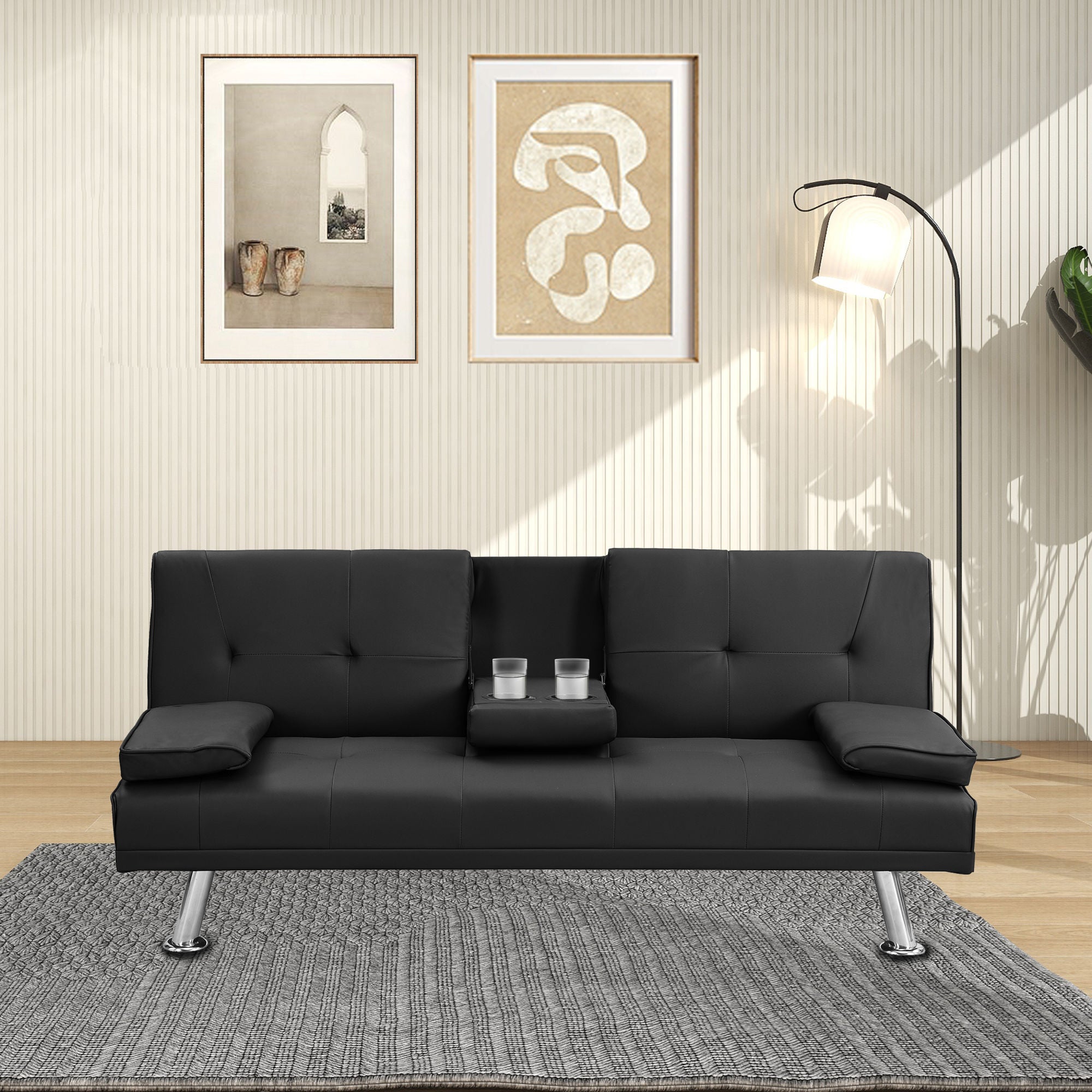 sofa bed with Armrest two holders WOOD FRAME, STAINLESS LEG, FUTON SOFA PVC