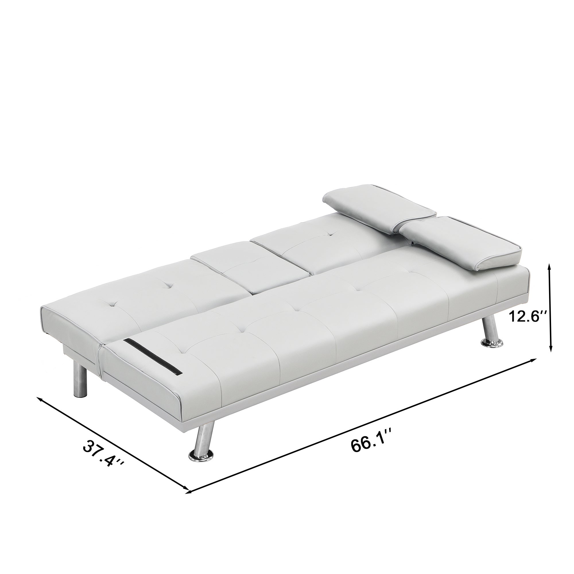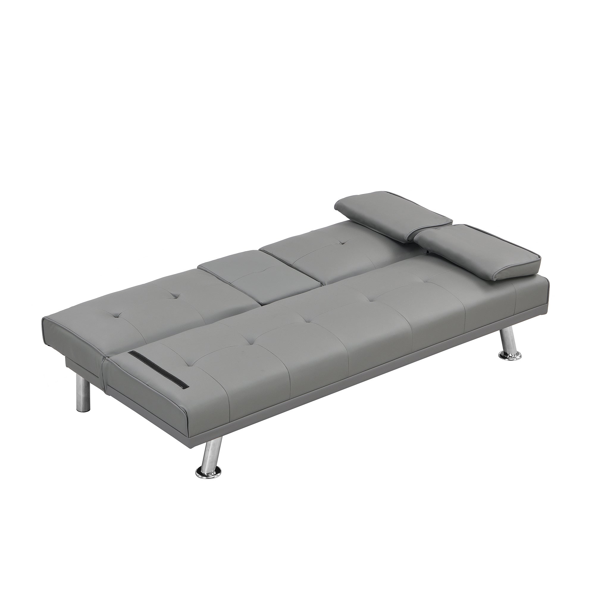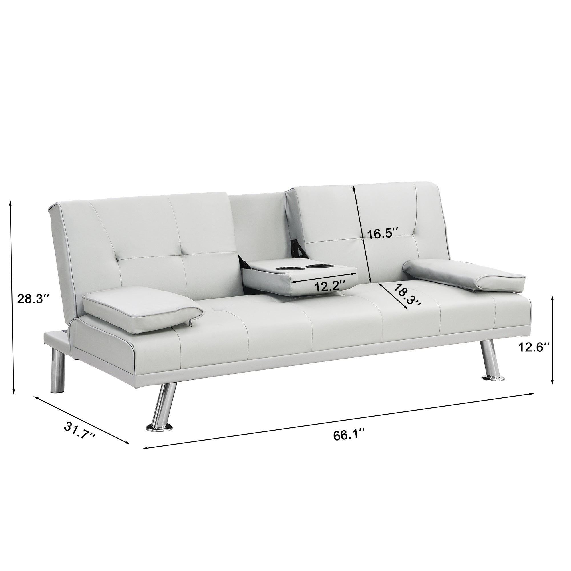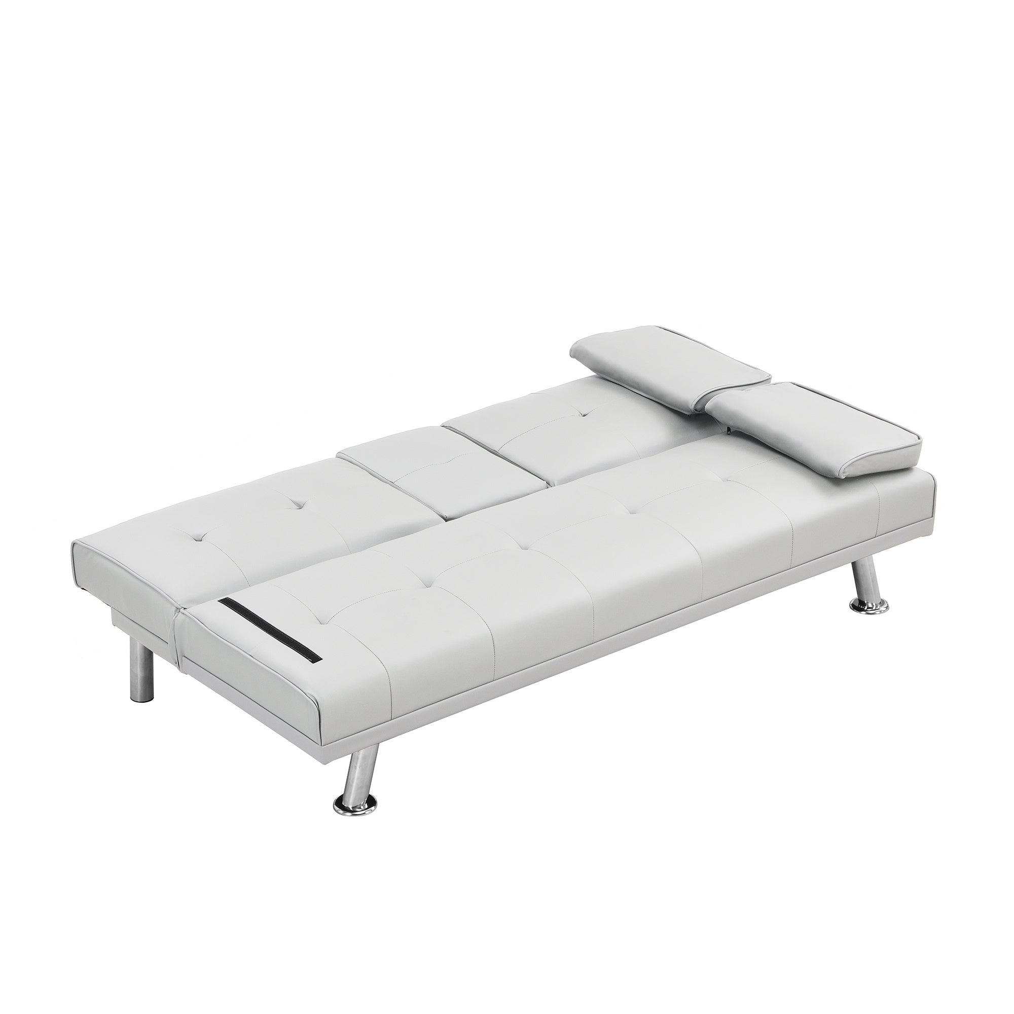 sofa bed with Armrest two holders WOOD FRAME, STAINLESS LEG, FUTON SOFA PVC