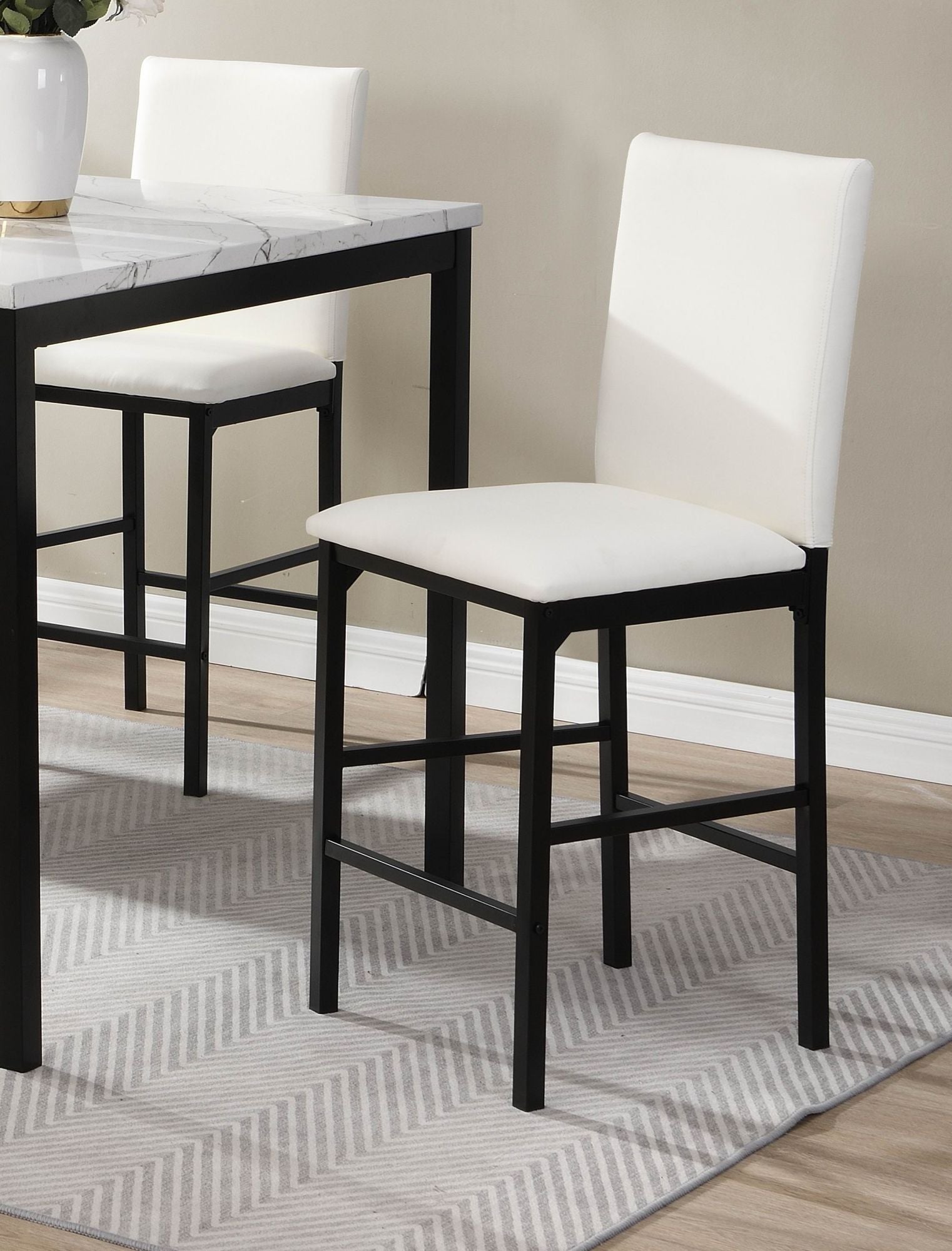White Counter Height Chairs 4pc Set Black Metal Frame Casual Dining Room Furniture Faux Leather Upholstered