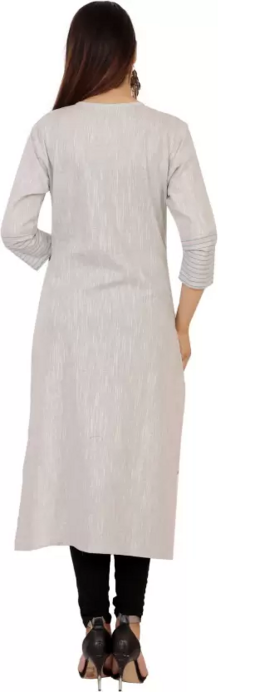 Women Embroidered Pure Cotton Straight Kurta (Grey)