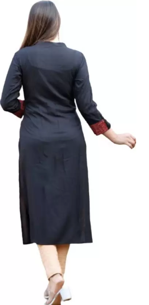 Women Embroidered Viscose Rayon Straight Kurta (Black)