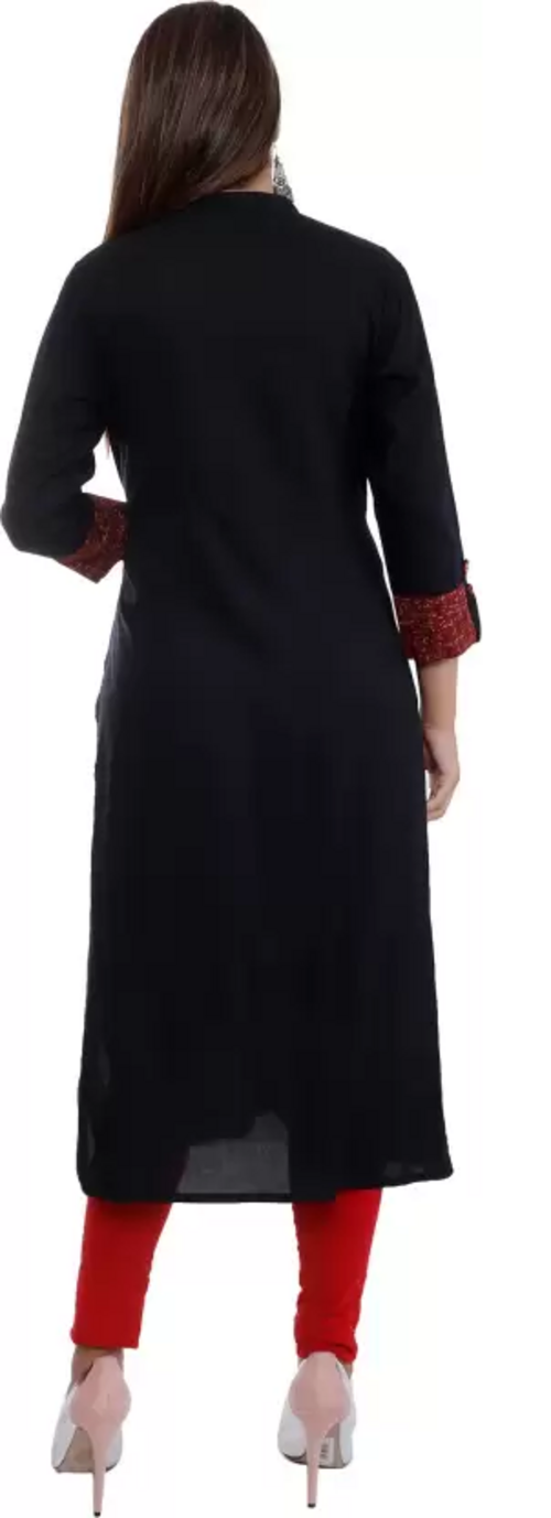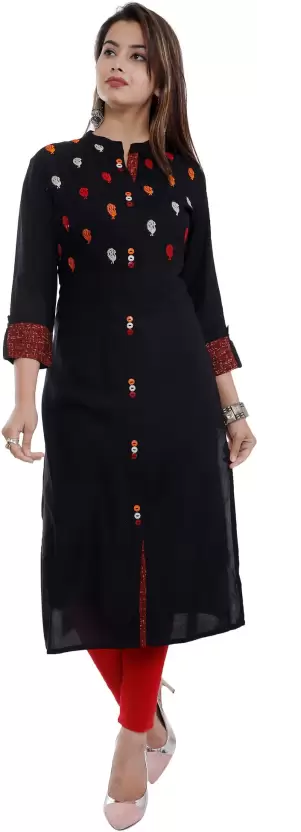 Women Embroidered Viscose Rayon Straight Kurta (Blue)