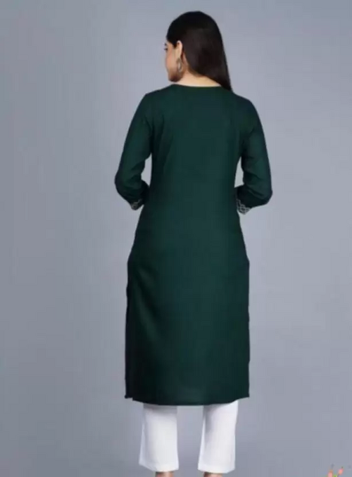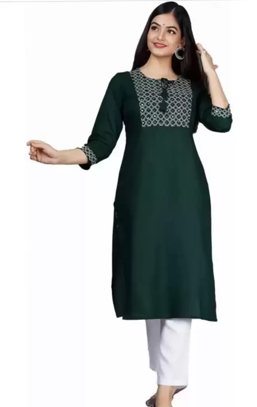 Women Embroidered Viscose Rayon Straight Kurta (Green)