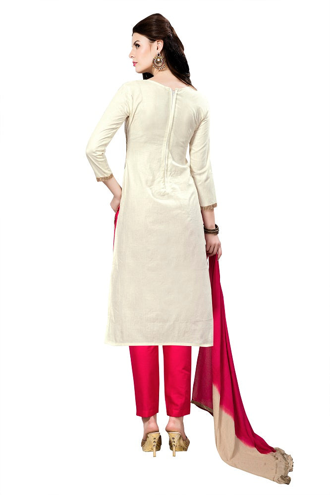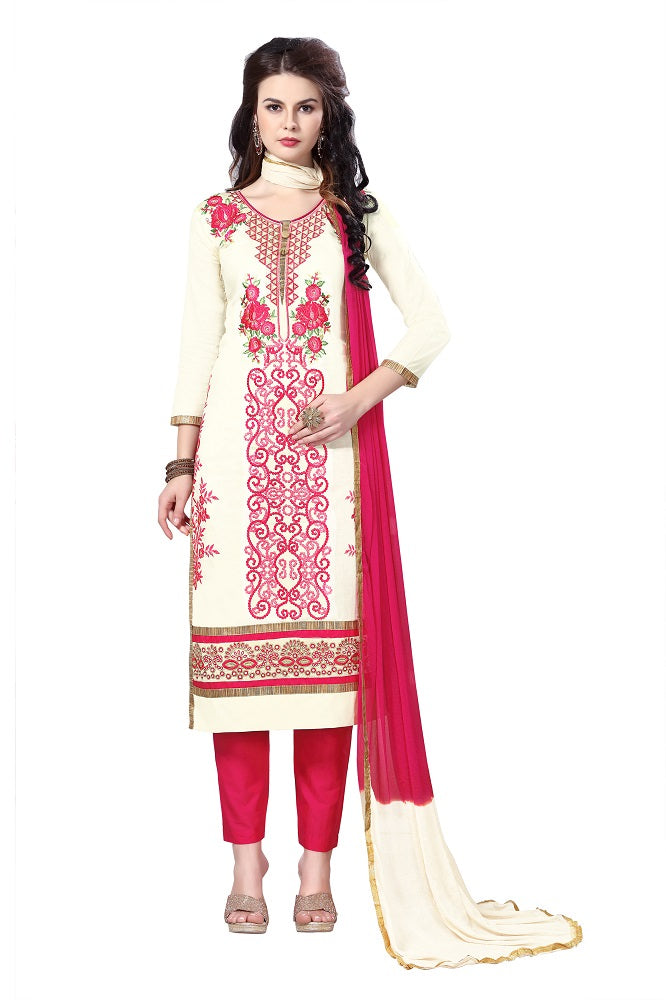 Fabric-Cotton Work-Embroidered Party Wear Suit Top:2.20 Mtr,Bottom:2.20Mtr,Dupatta:2Mtr